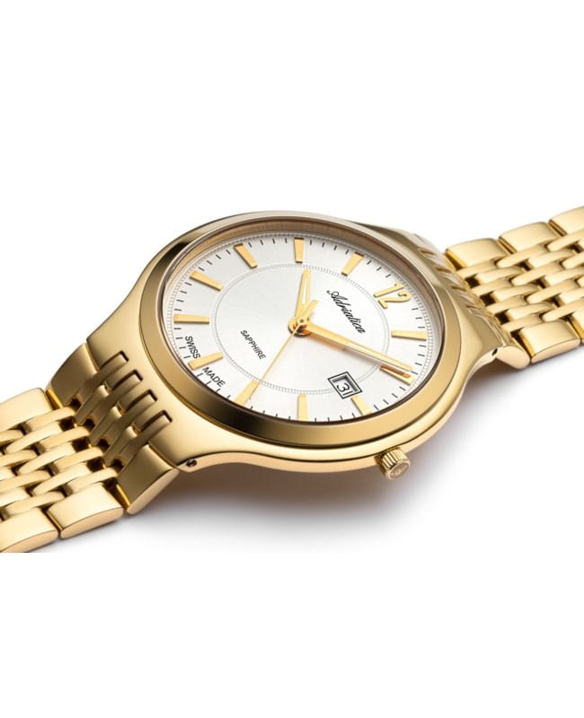 Мужские швейцарские наручные часы Adriatica Premiere A8296.1153Q, кварцевый механизм с высокой точностью. Сапфировое стеклоСапфировое стеклоПрочный и надёжный материал из кристалла сапфира синтетического происхождения, характеризующийся особой твёрдостью и устойчивостью к царапинам и повреждениям. устойчивое к появлению царапин, обладающее высокой прозрачностью защищает серебристый циферблат, на котором расположилось окошко даты в районе 3 часа, а также метки в виде штрихов и арабская цифра 12. Корпус часов изготовлен из стали с PVD-покрытиемPVDУльтратонкое покрытие наносится в технике вакуумного напыления, сочетает в себе нитрид титана особой прочности со слоем золота или оксида хрома. Несёт в себе декоративную или защитную функцию.. Стальной браслет на раскладной застёжкеРаскладная застёжкаТакой тип застёжки используется только на браслетах из металла. Она никогда не раскрывается полностью, происходит разделение на 2 и более частей. Раскладывающая застёжка снизит вероятность потери часов к минимуму. с PVD-покрытиемPVDУльтратонкое покрытие наносится в технике вакуумного напыления, сочетает в себе нитрид титана особой прочности со слоем золота или оксида хрома. Несёт в себе декоративную или защитную функцию.. Надежный кварцевый механизм с калибром ETA F06 гарантирует точность времени, а водозащита 50 метров, позволит плавать, что позволит защитить корпус от случайных брызг или капель дождя.