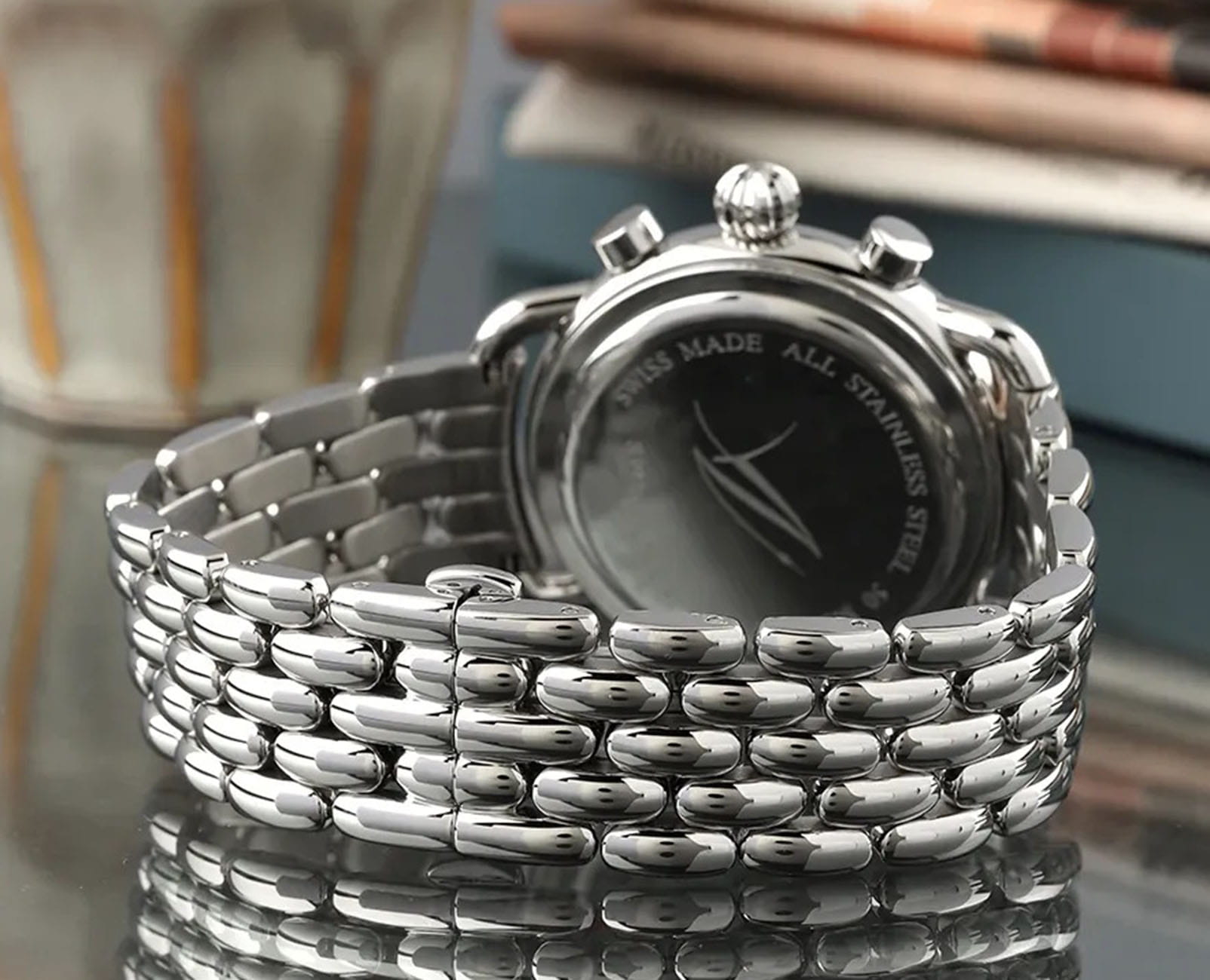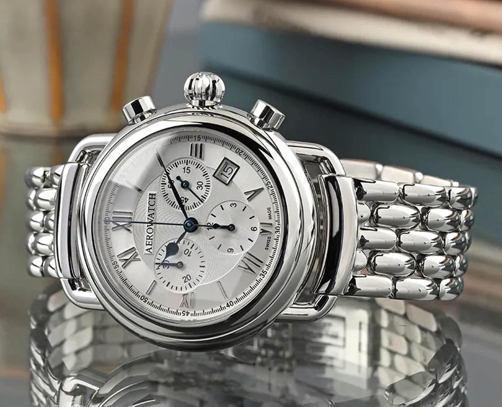Мужские швейцарские часы-хронографХронографФункция позволяет измерять отрезки времени с особой точностью: часы, минуты, секунды. Верным признаком хронографа является наличие на циферблате 3 дополнительных окошек-счётчиков. Aerowatch 1942 83926 AA07 M, кварцевый механизм с высокой точностью. Сапфировое стеклоСапфировое стеклоПрочный и надёжный материал из кристалла сапфира синтетического происхождения, характеризующийся особой твёрдостью и устойчивостью к царапинам и повреждениям. устойчивое к появлению царапин, обладающее высокой прозрачностью. Корпус и браслет изготовлены из нержавеющей стали. На циферблате расположены 3 счетчика, окошко даты в положении 4 часов. Класс водозащиты: 50 метров, позволит защитить корпус от случайных брызг или капель дождя. Стальной браслет на застёжке «бабочка» с кнопкамиЗастёжка "бабочка"Такой вид застёжки дополняется предохранителями, помогающими избежать случайного раскрытия браслета. Обладают изящным исполнением. .