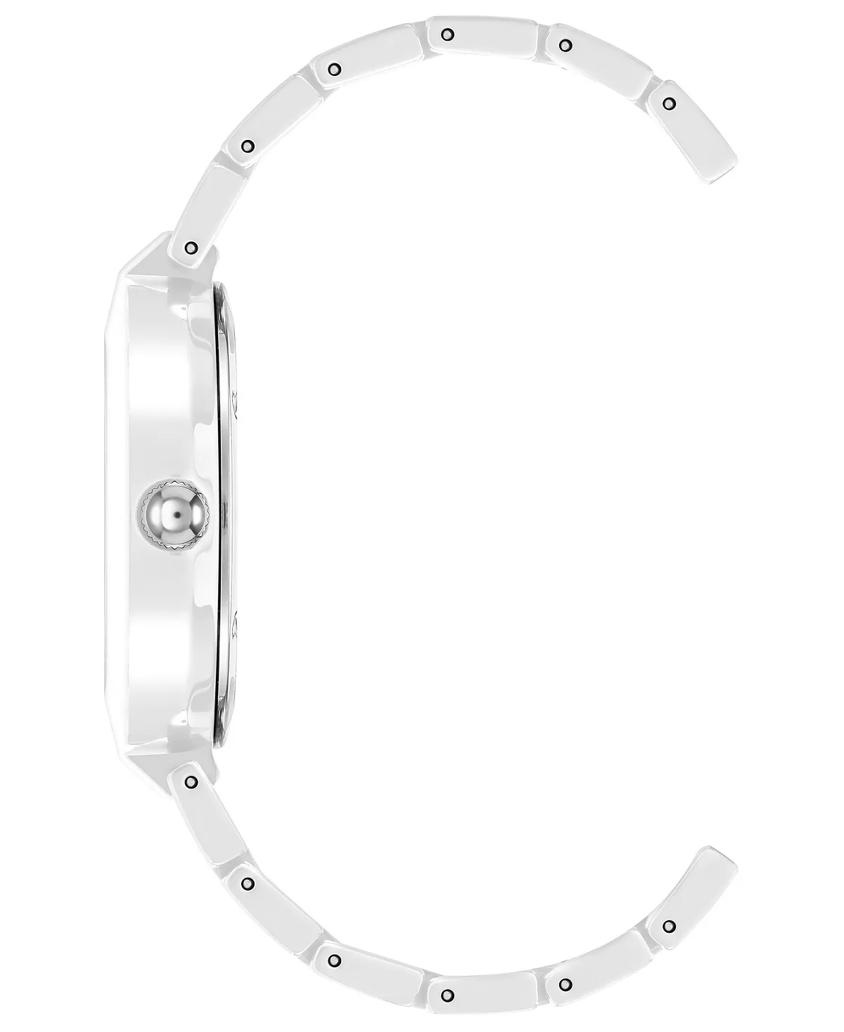 Женские американские наручные часы Anne Klein 4037MPWT, кварцевый механизм с высокой точностью. Класс водозащиты: 30 метров, позволит защитить корпус от случайных брызг или капель дождя. Минеральное стеклоМинеральное стеклоМинеральное стекло представляет собой искусственно выращенный минерал кварца. Такое стекло отличается особой устойчивостью к повреждениям и царапинам. Уступает по некоторым качествам сапфировому стеклу. устойчивое к мелким механическим повреждениям. Корпус часов изготовлен из стали. Керамический браслет на раскладной застёжкеРаскладная застёжкаТакой тип застёжки используется только на браслетах из металла. Она никогда не раскрывается полностью, происходит разделение на 2 и более частей. Раскладывающая застёжка снизит вероятность потери часов к минимуму. с кнопками. Римская индикация времени. Керамический безельБезельВнешний ободок, закрепляющий стекло. В спортивных часах так называется поворотное кольцо с делениями на циферблате, выполняет роль таймера – замеряет отрезки времени на шкале. Неподвижный безель – элемент декора. Однонаправленно вращающийся безель на дайверских часах позволяет фиксировать моменты погружения и выныривания на поверхность..