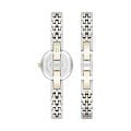 Женские кварцевые часы Anne Klein Box Set 5231TTST представляют собой элегантный аксессуар с круглым корпусом 22 мм из стали с частичным IP-покрытиемIP-покрытиеМетод ионного напыления. Демонстрирует повышенную устойчивость к истиранию, окислению и химическим веществам. Под воздействием высокого давления и температуры около 1500°C молекулы металла надёжно соединяются с частицами корпуса часов. цвета желтого золота. Модель оснащена кварцевым механизмом с точностью хода ±20 секунд в месяц. Циферблат с позолоченными стрелками защищен минеральным стекломМинеральное стеклоМинеральное стекло представляет собой искусственно выращенный минерал кварца. Такое стекло отличается особой устойчивостью к повреждениям и царапинам. Уступает по некоторым качествам сапфировому стеклу., устойчивым к царапинам. Водонепроницаемость 30 метров (3 атм) обеспечивает защиту от брызг и дождя. Изысканный браслет из нержавеющей стали с частичным IP-покрытиемIP-покрытиеМетод ионного напыления. Демонстрирует повышенную устойчивость к истиранию, окислению и химическим веществам. Под воздействием высокого давления и температуры около 1500°C молекулы металла надёжно соединяются с частицами корпуса часов. и с ювелирной застежкой гармонично сочетается с корпусом, создавая целостный образ. Часы отличаются утонченным профилем и комфортной посадкой на запястье. Прилагается дополнительный браслет.