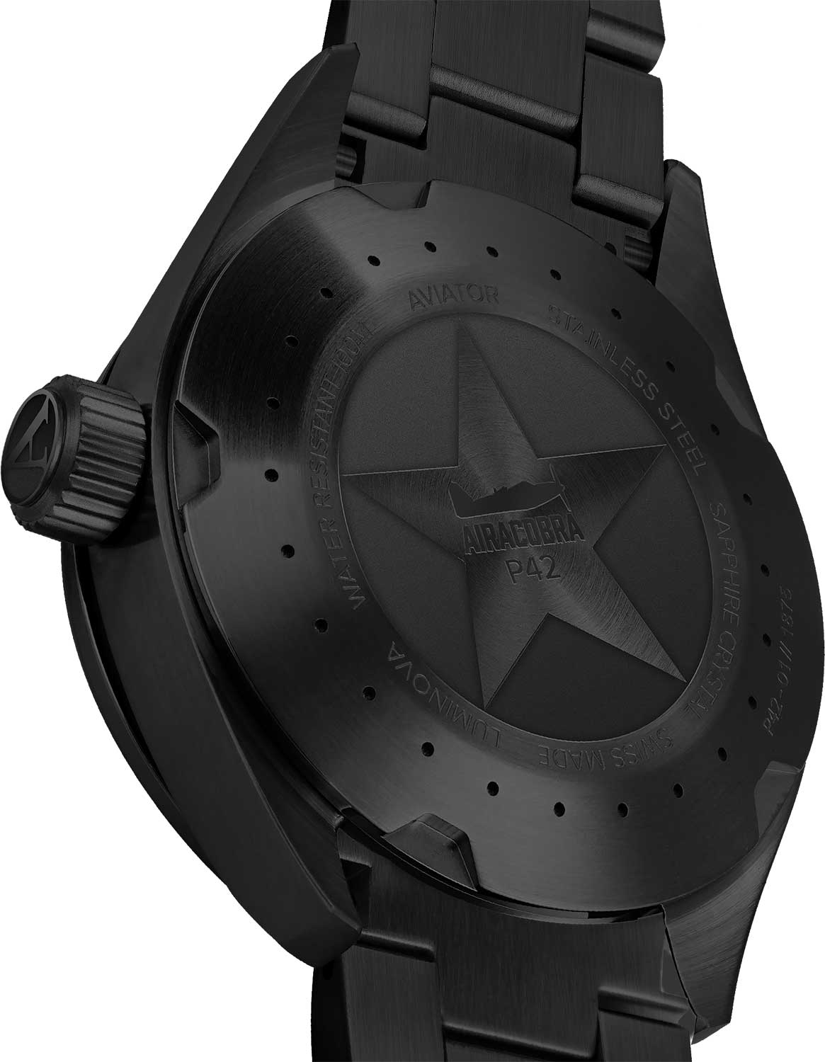 Aviator Airacobra V.1.22.5.148.5 — швейцарские часы в классике авиадизайна, сочетающие безупречную читаемость и высокую надёжность. Корпус диаметром 42 мм выполнен из нержавеющей стали с PVD-покрытиемPVDУльтратонкое покрытие наносится в технике вакуумного напыления, сочетает в себе нитрид титана особой прочности со слоем золота или оксида хрома. Несёт в себе декоративную или защитную функцию. — это придаёт модели благородный и уверенный облик.