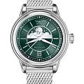 Aviator Douglas MoonFlight V.1.33.0.262.5— элегантные дамские швейцарские часы с утончённой авиационной эстетикой. Корпус 36 мм из нержавеющей стали 316L обладает компактными пропорциями и удобным профилем. Циферблат в стиле Art Deco украшает усложнение фаз Луны в верхней половине, обрамлённой тонким кольцом облаков. Отмечено окно даты в положении «6 часов». Стрелки обработаны люминесцентным покрытиемЛюминесцентное покрытиеПозволяет считывать показания времени в темноте. Производители наносят на стрелки, часовые индексы, безель или поверхность циферблата светонакопительный состав, дающий холодное свечение. Superluminova — для уверенного считывания в темноте. Поверхность защищена сапфировым стекломСапфировое стеклоПрочный и надёжный материал из кристалла сапфира синтетического происхождения, характеризующийся особой твёрдостью и устойчивостью к царапинам и повреждениям. с антибликовым покрытиемАнтибликовое покрытиеСлой оксида металла в 0,13-0,3 микрон, благодаря которому стекло часов не бликует и не отражает свет. Антибликовое покрытие уменьшает отражение света в 10 раз, обеспечивая отличную читаемость показателей циферблата.. Сердце модели — швейцарский кварцевый механизм Ronda 708 с функцией отображения лунных фаз, 13 рубинами и возможностью работать до 54 месяцев без замены батареи. Завинчивающаяся задняя крышка с гравировкой Douglas DC-3 и герметичность до 100 метров создают надёжную основу для эксплуатации. Стальной браслет миланского плетения на раскладном замкеРаскладной замокДанный вариант застежки используется только на часах с металлическим браслетом. Отличительная особенность такого крепления в том, что длина браслета становится универсальной и вы можете самостоятельно отрегулировать нужный вам размер – застежка просто двигается по браслету часов., сочетая комфорт, элегантность и практичность. Лимитированная серия - 950 экземпляров. Aviator Douglas MoonFlight — это гармоничное сочетание авиационного наследия, женской элегантности и технической изысканности, воплощённое в элегантном и функциональном аксессуаре.