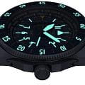 Циферблат отличается детальной функциональностью: в центре — крупные арабские цифры и стрелки, покрытые люминесцентным покрытиемЛюминесцентное покрытиеПозволяет считывать показания времени в темноте. Производители наносят на стрелки, часовые индексы, безель или поверхность циферблата светонакопительный состав, дающий холодное свечение., обеспечивающими мгновенное считывание времени даже в темноте. На «3 часах» — окошко даты, а индикатор второго часового пояса (GMT) удобно расположен на «9 часах». С внешней стороны — вращающийся безельБезельВнешний ободок, закрепляющий стекло. В спортивных часах так называется поворотное кольцо с делениями на циферблате, выполняет роль таймера – замеряет отрезки времени на шкале. Неподвижный безель – элемент декора. Однонаправленно вращающийся безель на дайверских часах позволяет фиксировать моменты погружения и выныривания на поверхность. с PVD-покрытиемPVDУльтратонкое покрытие наносится в технике вакуумного напыления, сочетает в себе нитрид титана особой прочности со слоем золота или оксида хрома. Несёт в себе декоративную или защитную функцию. с насечкой и градусной шкалой для секунд — идеален для расчёта времени пути или времени прибытия  .