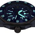 Циферблат отличается детальной функциональностью: в центре — крупные арабские цифры и стрелки, покрытые люминесцентным покрытиемЛюминесцентное покрытиеПозволяет считывать показания времени в темноте. Производители наносят на стрелки, часовые индексы, безель или поверхность циферблата светонакопительный состав, дающий холодное свечение., обеспечивающими мгновенное считывание времени даже в темноте. На «3 часах» — окошко даты, а индикатор второго часового пояса (GMT) удобно расположен на «9 часах». С внешней стороны — вращающийся безельБезельВнешний ободок, закрепляющий стекло. В спортивных часах так называется поворотное кольцо с делениями на циферблате, выполняет роль таймера – замеряет отрезки времени на шкале. Неподвижный безель – элемент декора. Однонаправленно вращающийся безель на дайверских часах позволяет фиксировать моменты погружения и выныривания на поверхность. с PVD-покрытиемPVDУльтратонкое покрытие наносится в технике вакуумного напыления, сочетает в себе нитрид титана особой прочности со слоем золота или оксида хрома. Несёт в себе декоративную или защитную функцию. с насечкой и градусной шкалой для секунд — идеален для расчёта времени пути или времени прибытия .