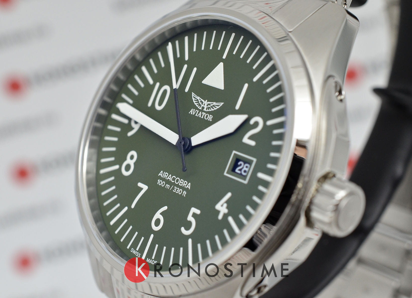 Aviator V.1.38.0.319.5 “Airacobra 43 Type A” — надёжные швейцарские пилотские часы с насыщенным функционалом и строгим авиационным дизайном. Корпус диаметром 42,8 мм выполнен из нержавеющей стали.