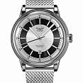 Aviator Douglas DC-3 V.3.32.0.247.5 — швейцарские часы в классике авиадизайна, сочетающие безупречную читаемость и высокую надёжность. Лимитированная серия. Корпус диаметром 45 мм выполнен из нержавеющей стали 316L. Накладные метки выполнены в виде штрихов. Окошко даты находится в положении 6 часов. Часовые метки и стрелки покрыты люминесцентным покрытиемЛюминесцентное покрытиеПозволяет считывать показания времени в темноте. Производители наносят на стрелки, часовые индексы, безель или поверхность циферблата светонакопительный состав, дающий холодное свечение. Superluminova, позволяющим легко определять время даже в тёмное время суток. Поверхность защищена прочным сапфировым стекломСапфировое стеклоПрочный и надёжный материал из кристалла сапфира синтетического происхождения, характеризующийся особой твёрдостью и устойчивостью к царапинам и повреждениям. с антибликовым покрытиемАнтибликовое покрытиеСлой оксида металла в 0,13-0,3 микрон, благодаря которому стекло часов не бликует и не отражает свет. Антибликовое покрытие уменьшает отражение света в 10 раз, обеспечивая отличную читаемость показателей циферблата., устойчивым к царапинам. Сердце модели — швейцарский механизм Sellita SW 200-1, известный своей точностью и долговечностью. Водозащита 100 метров, позволит плавать, нырять и заниматься другими водными видами спорта. Завинчивающаяся головка и задняя крышка обеспечивают уверенную ударопрочностьУдаропрочный корпусМеханизм заключён в корпус, выполненный из современных материалов, устойчивых к ударам, механическим повреждениям и падению с высоты: инновационный пластик, карбон, нержавеющая сталь, титан. и надёжную защиту от влаги и пыли. В механизме 26 камней, запас хода 38 часов. Модель дополнена стальным браслетом миланского плетения, закреплённым с помощью раскладной застёжкиРаскладная застёжкаТакой тип застёжки используется только на браслетах из металла. Она никогда не раскрывается полностью, происходит разделение на 2 и более частей. Раскладывающая застёжка снизит вероятность потери часов к минимуму.