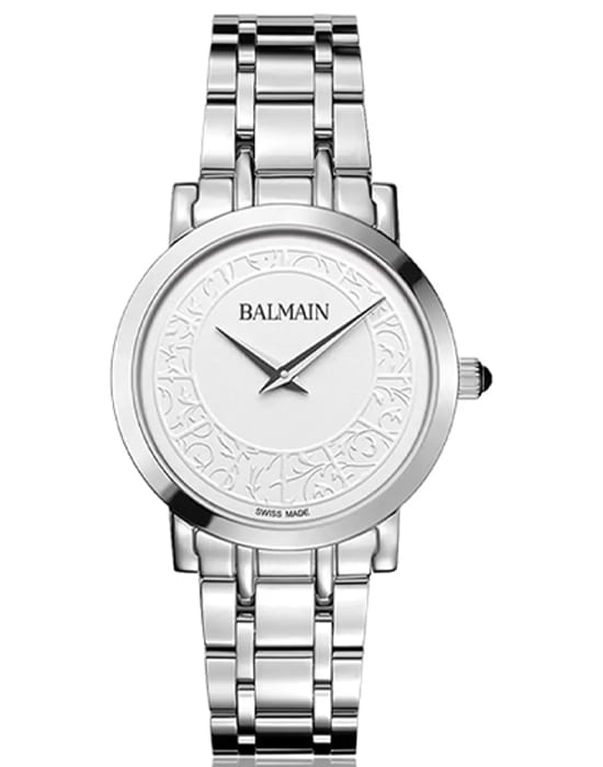 Женские часы Balmain Laelia B4431.33.15 кварцевый механизм с высокой точностью. Сапфировое стеклоСапфировое стеклоПрочный и надёжный материал из кристалла сапфира синтетического происхождения, характеризующийся особой твёрдостью и устойчивостью к царапинам и повреждениям. устойчивое к появлению царапин, обладающее высокой прозрачностью. Корпус изготовлен из нержавеющей стали. Класс водозащиты: 50 метров, позволит защитить корпус от случайных брызг или капель дождя. Стальной браслет. на застёжке «бабочка» с кнопкамиЗастёжка "бабочка"Такой вид застёжки дополняется предохранителями, помогающими избежать случайного раскрытия браслета. Обладают изящным исполнением. .