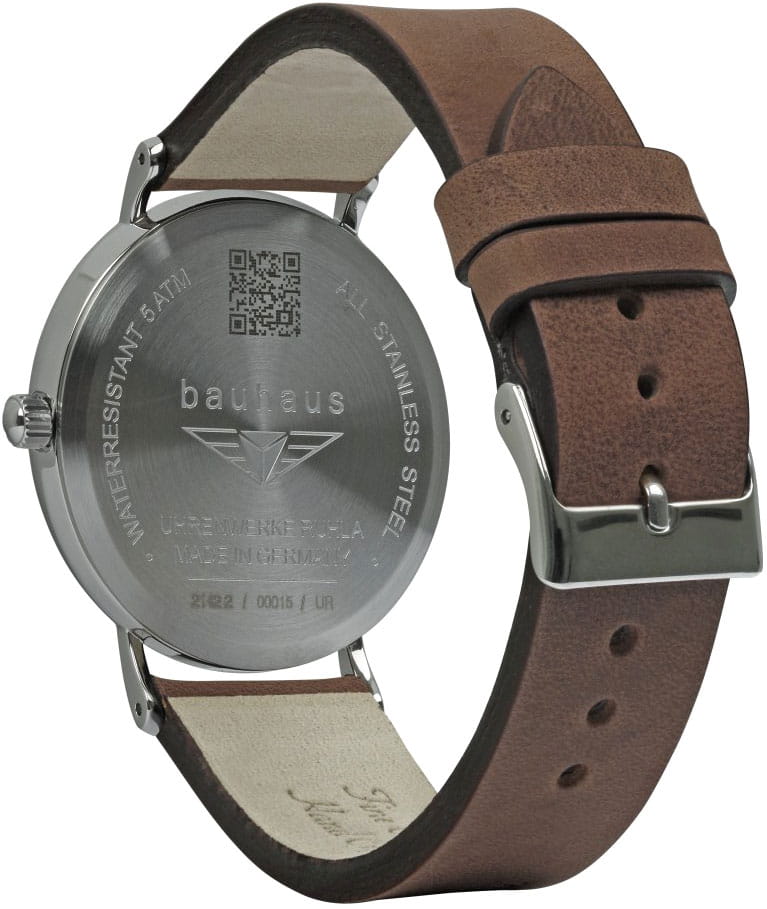 Мужские кварцевые часы Bauhaus — это аксессуар с классическим дизайном, вдохновлённым принципами ар-деко и минимализма. Корпус диаметром 41 мм и толщиной 10 мм выполнен из стали с полированной поверхностью. Циферблат чёрного цвета оформлен арабскими цифрами и узкими прямоугольными стрелками в стиле Baton. Окошко даты расположено в положении 6 часов. Циферблат защищён прочным минеральным стекломМинеральное стеклоМинеральное стекло представляет собой искусственно выращенный минерал кварца. Такое стекло отличается особой устойчивостью к повреждениям и царапинам. Уступает по некоторым качествам сапфировому стеклу. K1. Механизм — швейцарский кварцевый калибр Ronda 505. Часы оснащены кожаным ремешком с тиснением Bauhaus и классической пряжкой. Водонепроницаемость 50 м позволяет использовать часы в повседневных условиях. Идеальный выбор для тех, кто ценит немецкое качество и элегантность.