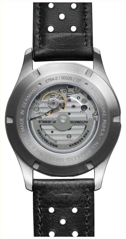 Мужские механические часы с автоподзаводом Bauhaus — это аксессуар в стиле авиационных приборов. Корпус диаметром 42 мм и толщиной 13 мм выполнен из нержавеющей стали. Циферблат чёрного цвета оформлен арабскими цифрами и прямоугольными стрелками в стиле Baton. Окошко даты расположено в положении 6 часов, также присутствует дополнительный 24-часовой циферблат. Стрелки и метки с люминесцентным покрытиемЛюминесцентное покрытиеПозволяет считывать показания времени в темноте. Производители наносят на стрелки, часовые индексы, безель или поверхность циферблата светонакопительный состав, дающий холодное свечение., обеспечивающим хорошую читаемость в темноте. Циферблат защищён прочным минеральным стекломМинеральное стеклоМинеральное стекло представляет собой искусственно выращенный минерал кварца. Такое стекло отличается особой устойчивостью к повреждениям и царапинам. Уступает по некоторым качествам сапфировому стеклу. K1. Механизм — автоматический калибр Miyota 8217. Прозрачная задняя крышка позволяет наблюдать за работой механизма. Часы оснащены чёрным кожаным ремешком на классической пряжке. Водонепроницаемость 50 м позволяет использовать часы в повседневных условиях. Идеальный выбор для тех, кто ценит немецкое качество и функциональный дизайн.