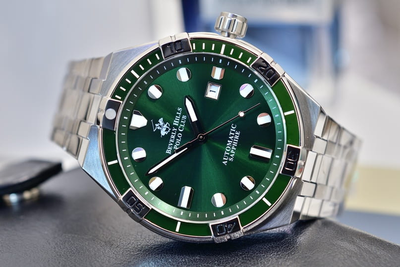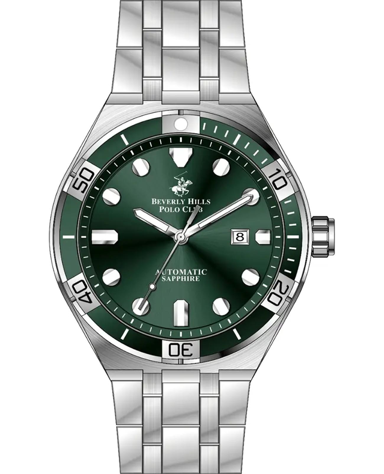 Американские мужские часы с сапфировым стекломСапфировое стеклоПрочный и надёжный материал из кристалла сапфира синтетического происхождения, характеризующийся особой твёрдостью и устойчивостью к царапинам и повреждениям. Beverly Hills Polo Club BP3575X.370, механический механизм (автоматический калибр) с высокой точностью. Сапфировое стеклоСапфировое стеклоПрочный и надёжный материал из кристалла сапфира синтетического происхождения, характеризующийся особой твёрдостью и устойчивостью к царапинам и повреждениям. устойчивое к появлению царапин, обладающее высокой прозрачностью. Класс водозащиты: 100 метров, позволит плавать, нырять и заниматься другими водными видами спорта. Корпус часов изготовлен из стали. Стальной браслет на раскладной застёжкеРаскладная застёжкаТакой тип застёжки используется только на браслетах из металла. Она никогда не раскрывается полностью, происходит разделение на 2 и более частей. Раскладывающая застёжка снизит вероятность потери часов к минимуму.. БезельБезельВнешний ободок, закрепляющий стекло. В спортивных часах так называется поворотное кольцо с делениями на циферблате, выполняет роль таймера – замеряет отрезки времени на шкале. Неподвижный безель – элемент декора. Однонаправленно вращающийся безель на дайверских часах позволяет фиксировать моменты погружения и выныривания на поверхность. с IP-покрытиемIP-покрытиеМетод ионного напыления. Демонстрирует повышенную устойчивость к истиранию, окислению и химическим веществам. Под воздействием высокого давления и температуры около 1500°C молекулы металла надёжно соединяются с частицами корпуса часов..Стрелки и метки с люминесцентным покрытиемЛюминесцентное покрытиеПозволяет считывать показания времени в темноте. Производители наносят на стрелки, часовые индексы, безель или поверхность циферблата светонакопительный состав, дающий холодное свечение..