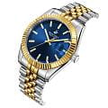 Циферблат насыщенного синего цвета оформлен лаконично: тонкие стрелки и аккуратные часовые метки создают ясную композицию, а небольшое окно даты на отметке «3 часа» добавляет практичности. От повреждений и царапин циферблат защищает прочное сапфировое стеклоСапфировое стеклоПрочный и надёжный материал из кристалла сапфира синтетического происхождения, характеризующийся особой твёрдостью и устойчивостью к царапинам и повреждениям., отличающееся высокой прозрачностью и стойкостью к износу.