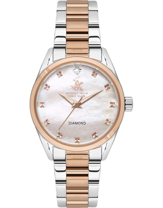 Женские часы Beverly Hills Polo BP3601C.510 из коллекции Quartz с бриллиантом на циферблате. Минеральное стеклоМинеральное стеклоМинеральное стекло представляет собой искусственно выращенный минерал кварца. Такое стекло отличается особой устойчивостью к повреждениям и царапинам. Уступает по некоторым качествам сапфировому стеклу. устойчивое к появлению царапин, обладающее высокой прозрачностью. Класс водозащиты: 50 метров, позволит защитить корпус от случайных брызг или капель дождя. Корпус и браслет часов изготовлены из нержавеющей стали. Стальной браслет на раскладной застёжкеРаскладная застёжкаТакой тип застёжки используется только на браслетах из металла. Она никогда не раскрывается полностью, происходит разделение на 2 и более частей. Раскладывающая застёжка снизит вероятность потери часов к минимуму.. Стрелки с люминесцентным покрытиемЛюминесцентное покрытиеПозволяет считывать показания времени в темноте. Производители наносят на стрелки, часовые индексы, безель или поверхность циферблата светонакопительный состав, дающий холодное свечение..