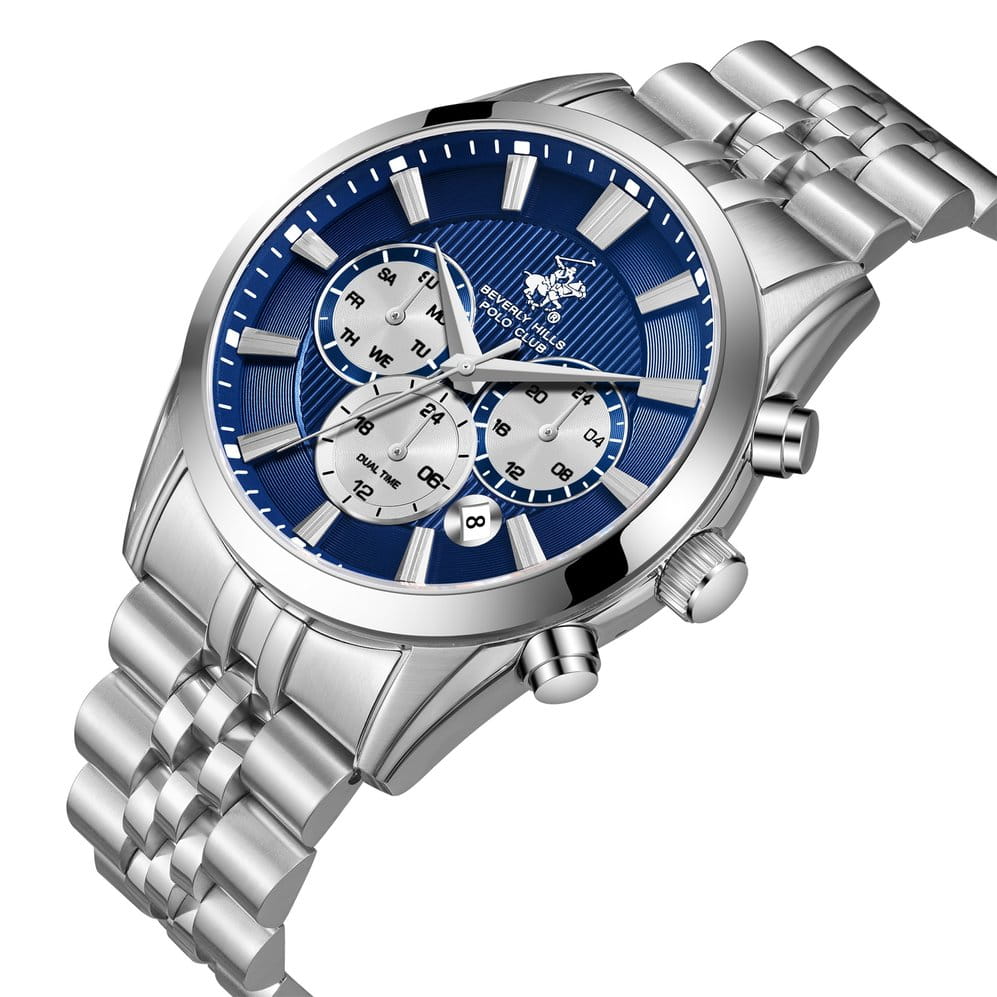 Американские мужские часы Beverly Hills Polo Club BP3782X.390 - это стильный мужской аксессуар, который сочетает элегантный дизайн и практичность. Корпус выполнен из нержавеющей стали серебристого цвета, диаметром 42 мм, что обеспечивает долговечность и утончённый внешний вид. Надежное минеральное стеклоМинеральное стеклоМинеральное стекло представляет собой искусственно выращенный минерал кварца. Такое стекло отличается особой устойчивостью к повреждениям и царапинам. Уступает по некоторым качествам сапфировому стеклу. с сапфировым покрытием защищает циферблат от царапин и обеспечивает долговечность. Модель оснащена кварцевым механизмом, обеспечивающим высокую точность хода. Стальной браслет на застёжке-бабочке с кнопкамиЗастёжка "бабочка"Такой вид застёжки дополняется предохранителями, помогающими избежать случайного раскрытия браслета. Обладают изящным исполнением. обеспечивает комфортное ношение. Функциональность модели расширена за счёт индикации дня даты, дня недели и дополнительным 24-х часовым индикатором. Водозащита 50 метров позволит защитить корпус от случайных брызг или капель дождя. Эта модель – отличный выбор для тех, кто ищет сочетание стиля, качества и функциональности. Часы станут не только полезным аксессуаром, но и выразительным элементом вашего имиджа.