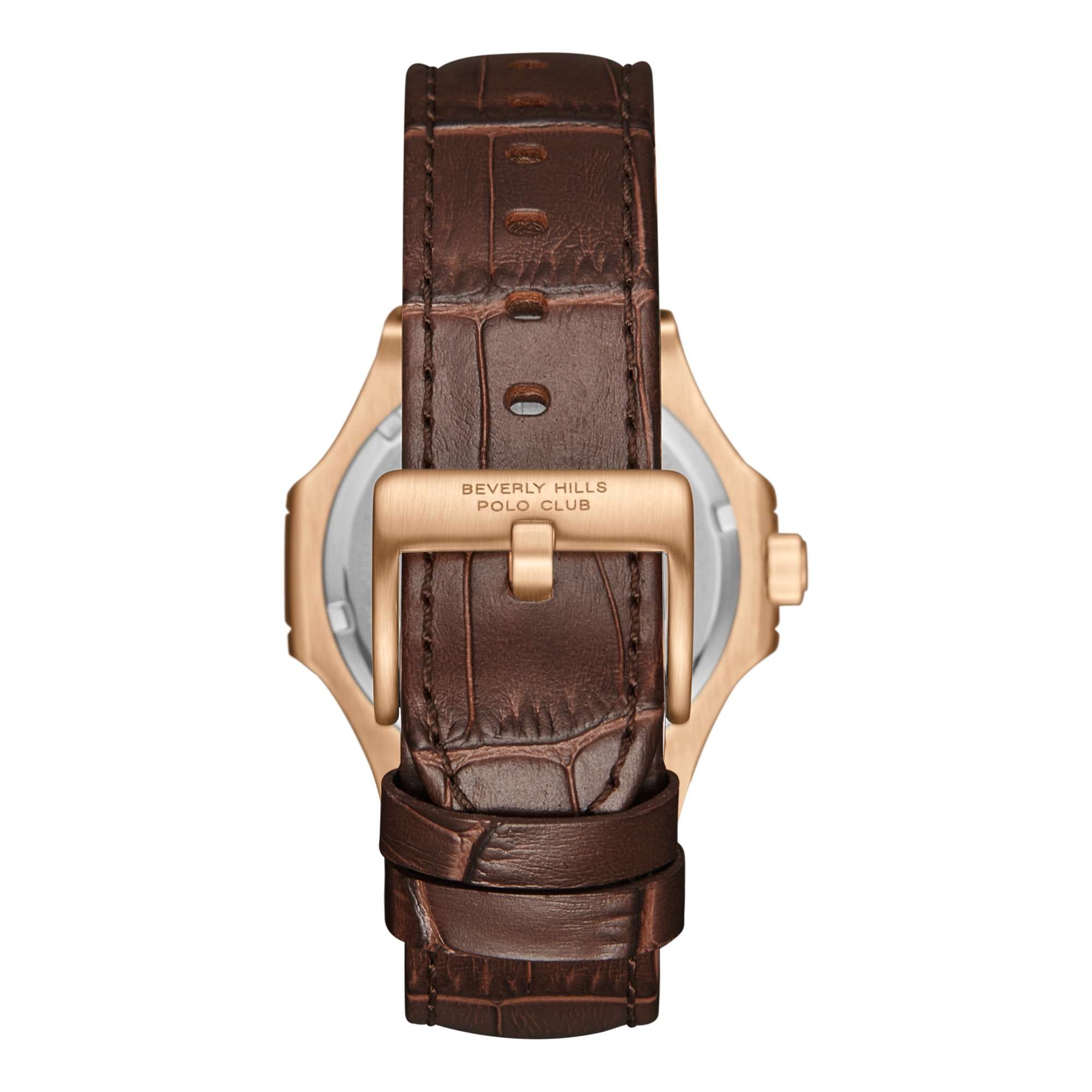 Американские мужские часы Beverly Hills Polo Club BP3792X.444 - это стильный мужской аксессуар, который сочетает элегантный дизайн и практичность. Корпус выполнен из нержавеющей стали с IP-покрытиемIP-покрытиеМетод ионного напыления. Демонстрирует повышенную устойчивость к истиранию, окислению и химическим веществам. Под воздействием высокого давления и температуры около 1500°C молекулы металла надёжно соединяются с частицами корпуса часов. цвета розового золота, диаметром 43,5 мм, что обеспечивает долговечность и утончённый внешний вид. Надежное минеральное стеклоМинеральное стеклоМинеральное стекло представляет собой искусственно выращенный минерал кварца. Такое стекло отличается особой устойчивостью к повреждениям и царапинам. Уступает по некоторым качествам сапфировому стеклу. с сапфировым покрытием защищает циферблат от царапин и обеспечивает долговечность. Модель оснащена кварцевым механизмом, обеспечивающим высокую точность хода. Кожаный ремешок на стандартной застежке обеспечивает комфортное ношение. Окошко даты находится в положении 3 часа. Стрелки и метки с люминесцентным покрытиемЛюминесцентное покрытиеПозволяет считывать показания времени в темноте. Производители наносят на стрелки, часовые индексы, безель или поверхность циферблата светонакопительный состав, дающий холодное свечение. позволяют легко считывать время даже в условиях недостаточного освещения. Водозащита 50 метров позволит защитить корпус от случайных брызг или капель дождя. Эта модель – отличный выбор для тех, кто ищет сочетание стиля, качества и функциональности. Часы станут не только полезным аксессуаром, но и выразительным элементом вашего имиджа.