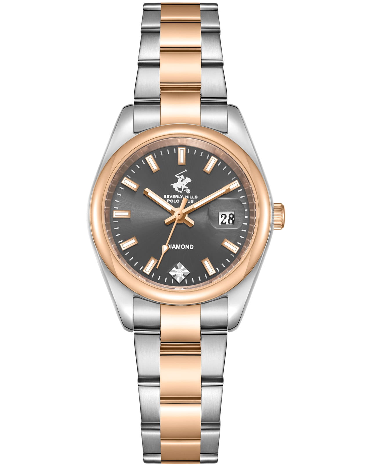 Американские женские часы Beverly Hills Polo Club BP3794X.560 - это стильный женский аксессуар, который сочетает элегантный дизайн и практичность. Корпус выполнен из нержавеющей стали серебристого цвета, диаметром 34,5 мм, что обеспечивает долговечность и утончённый внешний вид. Надежное минеральное стеклоМинеральное стеклоМинеральное стекло представляет собой искусственно выращенный минерал кварца. Такое стекло отличается особой устойчивостью к повреждениям и царапинам. Уступает по некоторым качествам сапфировому стеклу. с сапфировым покрытием защищает циферблат от царапин и обеспечивает долговечность. Метки в виде штрихов, в позиции "6 часов" инкрустирован синтетический бриллиант. Неподвижный безельБезельВнешний ободок, закрепляющий стекло. В спортивных часах так называется поворотное кольцо с делениями на циферблате, выполняет роль таймера – замеряет отрезки времени на шкале. Неподвижный безель – элемент декора. Однонаправленно вращающийся безель на дайверских часах позволяет фиксировать моменты погружения и выныривания на поверхность. с IP-покрытиемIP-покрытиеМетод ионного напыления. Демонстрирует повышенную устойчивость к истиранию, окислению и химическим веществам. Под воздействием высокого давления и температуры около 1500°C молекулы металла надёжно соединяются с частицами корпуса часов. цвета розового золота. Модель оснащена кварцевым механизмом, обеспечивающим высокую точность хода. Стальной браслет с частичным IP-покрытиемIP-покрытиеМетод ионного напыления. Демонстрирует повышенную устойчивость к истиранию, окислению и химическим веществам. Под воздействием высокого давления и температуры около 1500°C молекулы металла надёжно соединяются с частицами корпуса часов. на застёжке-бабочке с кнопкамиЗастёжка "бабочка"Такой вид застёжки дополняется предохранителями, помогающими избежать случайного раскрытия браслета. Обладают изящным исполнением. обеспечивает комфортное ношение. Стрелки и метки оснащены люминесцентным покрытиемЛюминесцентное покрытиеПозволяет считывать показания времени в темноте. Производители наносят на стрелки, часовые индексы, безель или поверхность циферблата светонакопительный состав, дающий холодное свечение., обеспечивающим отличную видимость даже при слабом освещении. Окошко даты находится в положении 3 часа. Водозащита 30 метров позволит защитить корпус от случайных брызг или капель дождя. Эта модель – отличный выбор для тех, кто ищет сочетание стиля, качества и функциональности. Часы станут не только полезным аксессуаром, но и выразительным элементом вашего имиджа.
