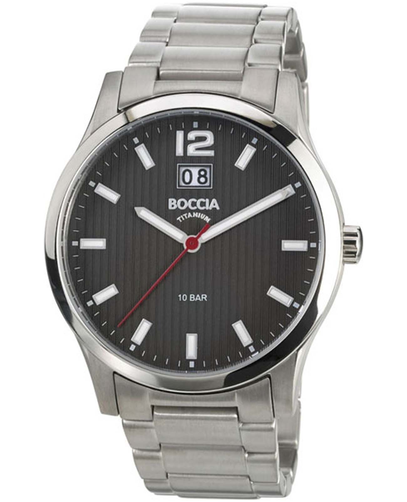 Мужские наручные часы Boccia Titanium 3580-02 с надёжным кварцевым механизмом. Корпус и браслет часов изготовлены из титана. Сапфировое стеклоСапфировое стеклоПрочный и надёжный материал из кристалла сапфира синтетического происхождения, характеризующийся особой твёрдостью и устойчивостью к царапинам и повреждениям. устойчивое к мелким механическим повреждениям. Класс водозащиты: 50 метров, позволит защитить корпус от случайных брызг или капель дождя. Титановый браслет на раскладной застёжкеРаскладная застёжкаТакой тип застёжки используется только на браслетах из металла. Она никогда не раскрывается полностью, происходит разделение на 2 и более частей. Раскладывающая застёжка снизит вероятность потери часов к минимуму.. Окошко даты находится в положении 12 часов. Стрелки и метки с люминесцентным покрытиемЛюминесцентное покрытиеПозволяет считывать показания времени в темноте. Производители наносят на стрелки, часовые индексы, безель или поверхность циферблата светонакопительный состав, дающий холодное свечение..