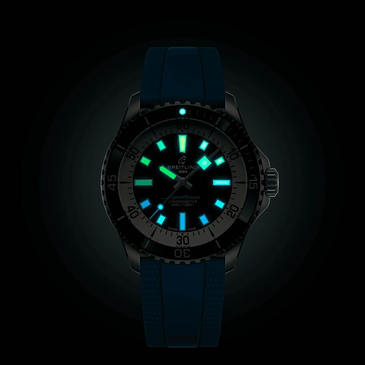 Мужские водонепроницаемые швейцарские часы Breitling Superocean Automatic 42 A17375211B2S1 механический механизм (автоматический калибр) с высокой точностью. Эти упрощённые часы получили название Superocean Slow Motion. Остались только чистые линии, массивные люминесцентные индексы, квадратные стрелки и высококонтрастное кольцо циферблата — всё для максимальной читаемости. Сапфировое стеклоСапфировое стеклоПрочный и надёжный материал из кристалла сапфира синтетического происхождения, характеризующийся особой твёрдостью и устойчивостью к царапинам и повреждениям. с антибликовое покрытиемАнтибликовое покрытиеСлой оксида металла в 0,13-0,3 микрон, благодаря которому стекло часов не бликует и не отражает свет. Антибликовое покрытие уменьшает отражение света в 10 раз, обеспечивая отличную читаемость показателей циферблата. устойчивое к появлению царапин, обладающее высокой прозрачностью. Часы водонепроницаемы на глубине до 300 м (1000 футов), а также устойчивы к ударам, песку и соленой воде. Корпус часов изготовлен из нержавеющей стали, диаметром 42 мм. Каучуковый ремешок с раскладной застёжкойРаскладная застёжкаТакой тип застёжки используется только на браслетах из металла. Она никогда не раскрывается полностью, происходит разделение на 2 и более частей. Раскладывающая застёжка снизит вероятность потери часов к минимуму., которая позволяет регулировать его длину в пределах 15 мм для удобного ношения поверх гидрокостюмов и неопреновых костюмов. Стрелки и метки с люминесцентным покрытиемЛюминесцентное покрытиеПозволяет считывать показания времени в темноте. Производители наносят на стрелки, часовые индексы, безель или поверхность циферблата светонакопительный состав, дающий холодное свечение. Super-LumiNova® обеспечивают хорошую читаемость. Поворотный безельБезельВнешний ободок, закрепляющий стекло. В спортивных часах так называется поворотное кольцо с делениями на циферблате, выполняет роль таймера – замеряет отрезки времени на шкале. Неподвижный безель – элемент декора. Однонаправленно вращающийся безель на дайверских часах позволяет фиксировать моменты погружения и выныривания на поверхность. из стали с керамической инкрустацией, защищенный от царапин, никогда не изнашивается и не выцветает. Лучше всего то, что это больше не просто часы для дайвинга — занимайтесь с ними серфингом, плавайте с ними, заходите с ними в пляжный бар, а затем надевайте их на ужин. Superocean идеально сочетает ностальгию по своему наследию со свежим внешним видом.
