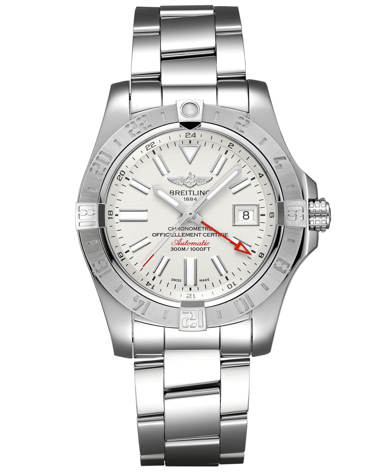 Модель Avenger II GMT отличается особой практичностью благодаря индикации в 24-часовом формате во втором часовом поясе и вращающемуся в оба направления безелю, который позволяет определять время в третьем часовом поясе. Надежная защита сертифицированного калибра с автоподзаводом обеспечивается за счет ультрапрочного стального корпуса, водонепроницаемость которого достигает 300 м (1000 футов), и продольного усиления конструкции часов.