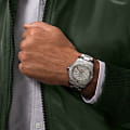 Удобство переключения и использования различных функций гарантирует массивная заводная головка с рифленой поверхностью. Цифры, напоминающие нанесенные по трафарету номера самолетов, подчеркивают оригинальный технологичный стиль часов.