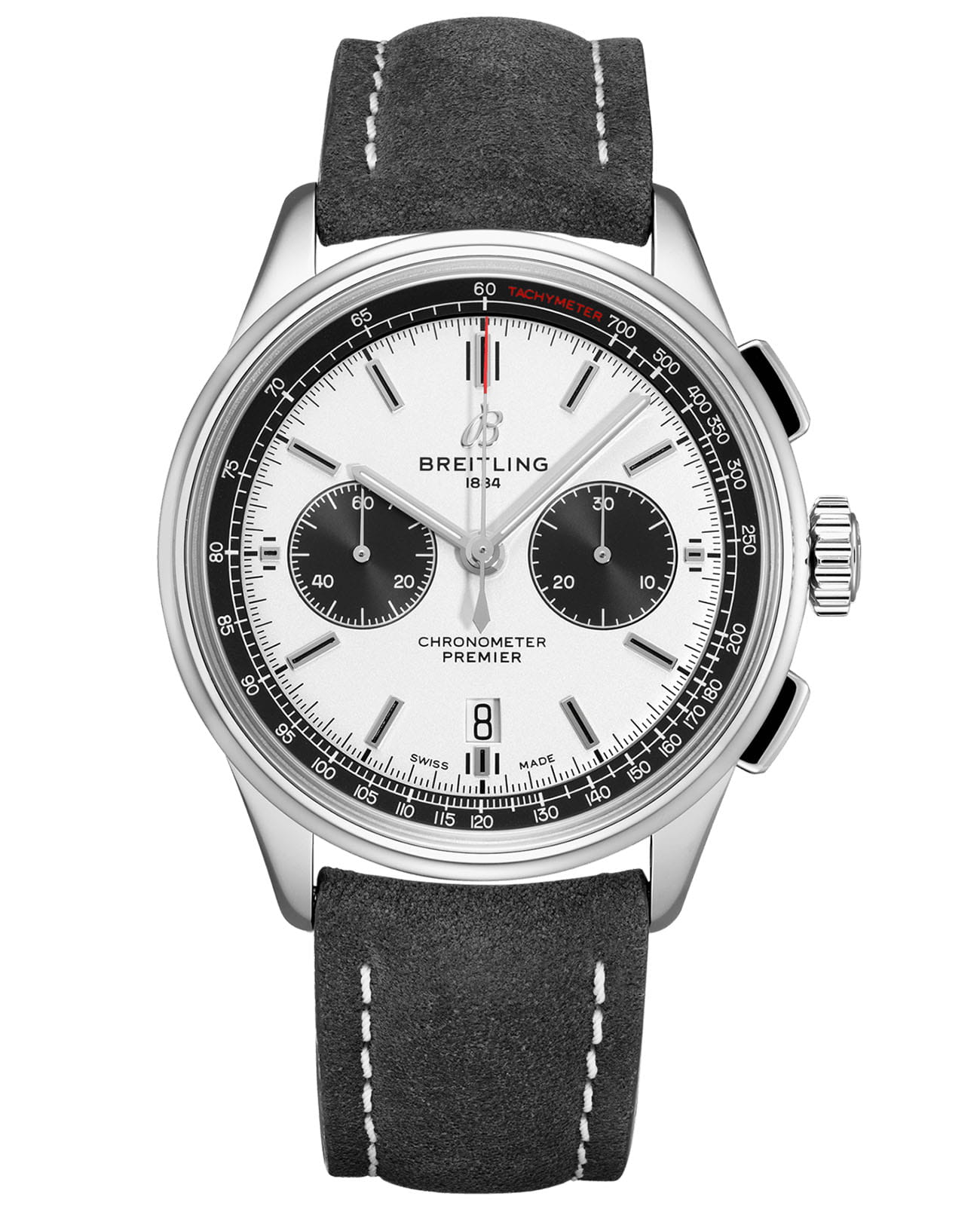 Часы Premier, разработанные Вилли Брайтлингом в 40-х годах прошлого века, стали первой моделью бренда, которая задумывалась в первую очередь как стильный аксессуар. Современная версия Premier, как и ее историческая предшественница, отличается элегантностью и изысканными деталями в стиле ретро, которые подчеркивают безупречный стиль своего владельца. Квадратные кнопки хронографаХронографФункция позволяет измерять отрезки времени с особой точностью: часы, минуты, секунды. Верным признаком хронографа является наличие на циферблате 3 дополнительных окошек-счётчиков., циферблат «панда», характерный для хронографов с компоновкой bi-compax, бороздки по бокам корпуса и прозрачная задняя крышка из сапфирового стеклаСапфировое стеклоПрочный и надёжный материал из кристалла сапфира синтетического происхождения, характеризующийся особой твёрдостью и устойчивостью к царапинам и повреждениям. – все эти детали создают оригинальный внешний вид модели.