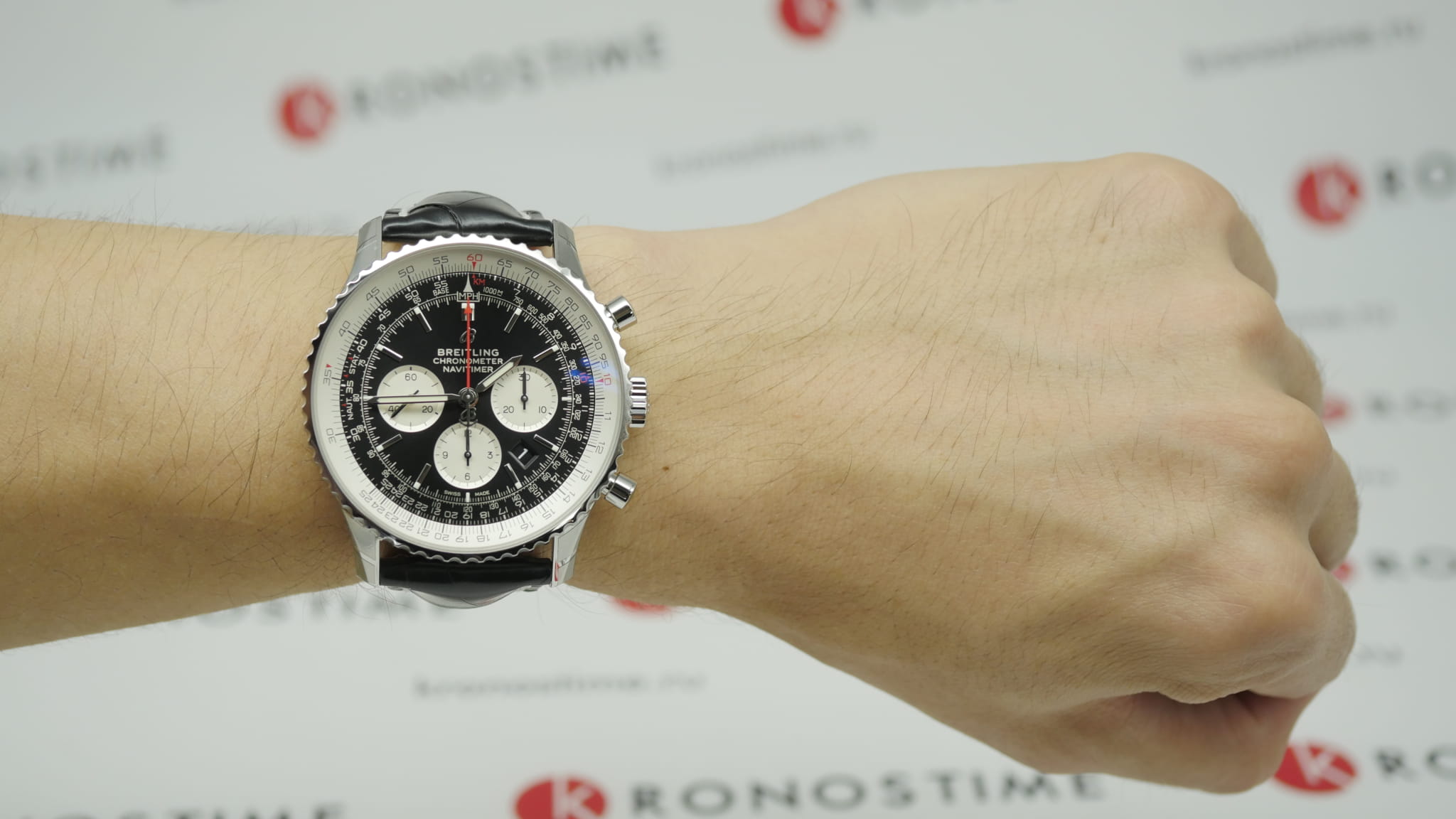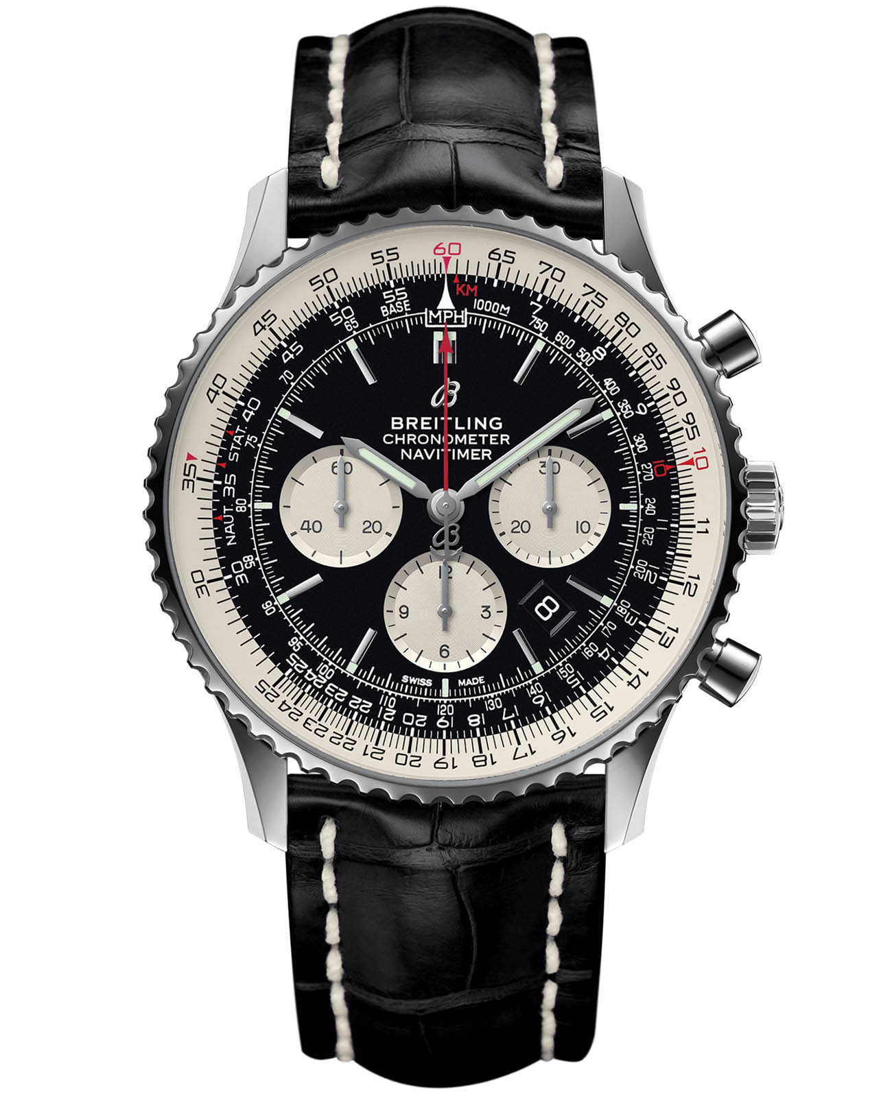 Классический представитель коллекции − модель Navitimer Chronograph 46 AB0127211B1P1 − отличается внушительным размером. Ее оригинальный 46-миллиметровый корпус с круглой логарифмической линейкой и превосходной считываемостью показаний на циферблате будет заметен на любом запястье. Прозрачная задняя крышка корпуса из сапфирового стекла позволяет наблюдать за работой мануфактурного калибра Manufacture Breitling Caliber 01, высококлассного сертифицированного хронографа с автоподзаводом.