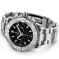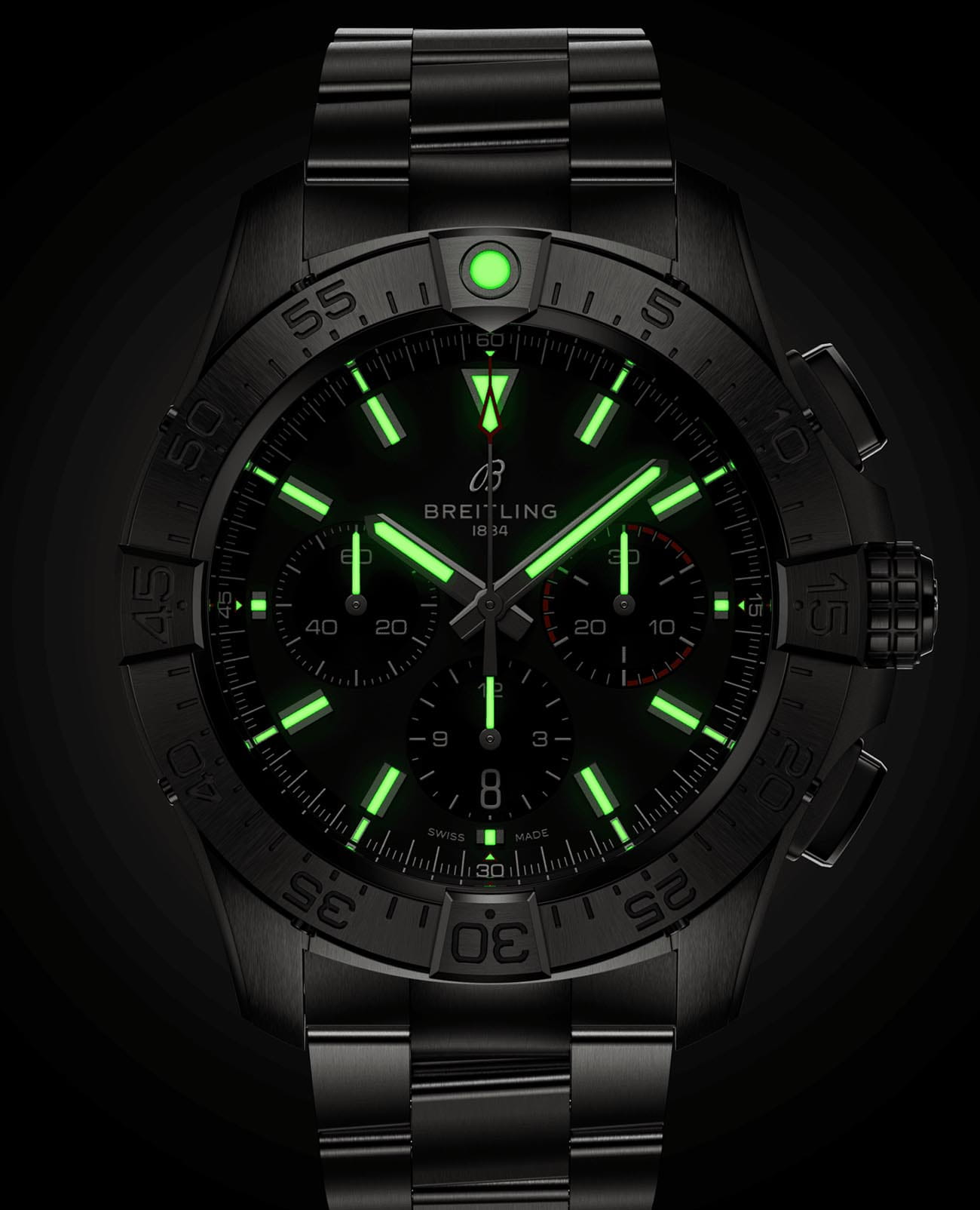 Мужские наручные часы c хронографомХронографФункция позволяет измерять отрезки времени с особой точностью: часы, минуты, секунды. Верным признаком хронографа является наличие на циферблате 3 дополнительных окошек-счётчиков. Breitling Avenger B01 Chronograph 44 AB0147101B1A1 с надёжным автоматическим механизмом. Корпус часов изготовлен из нержавеющей стали. Сапфировое стеклоСапфировое стеклоПрочный и надёжный материал из кристалла сапфира синтетического происхождения, характеризующийся особой твёрдостью и устойчивостью к царапинам и повреждениям. с антибликовым покрытием, устойчивое к мелким механическим повреждениям. Стальной браслет с раскладной застёжкойРаскладная застёжкаТакой тип застёжки используется только на браслетах из металла. Она никогда не раскрывается полностью, происходит разделение на 2 и более частей. Раскладывающая застёжка снизит вероятность потери часов к минимуму.. Стрелки и метки с люминесцентным покрытиемЛюминесцентное покрытиеПозволяет считывать показания времени в темноте. Производители наносят на стрелки, часовые индексы, безель или поверхность циферблата светонакопительный состав, дающий холодное свечение.. Однонаправленный безельБезельВнешний ободок, закрепляющий стекло. В спортивных часах так называется поворотное кольцо с делениями на циферблате, выполняет роль таймера – замеряет отрезки времени на шкале. Неподвижный безель – элемент декора. Однонаправленно вращающийся безель на дайверских часах позволяет фиксировать моменты погружения и выныривания на поверхность.. Класс водозащиты: 300 метров, позволит плавать, нырять и заниматься другими водными видами спорта.