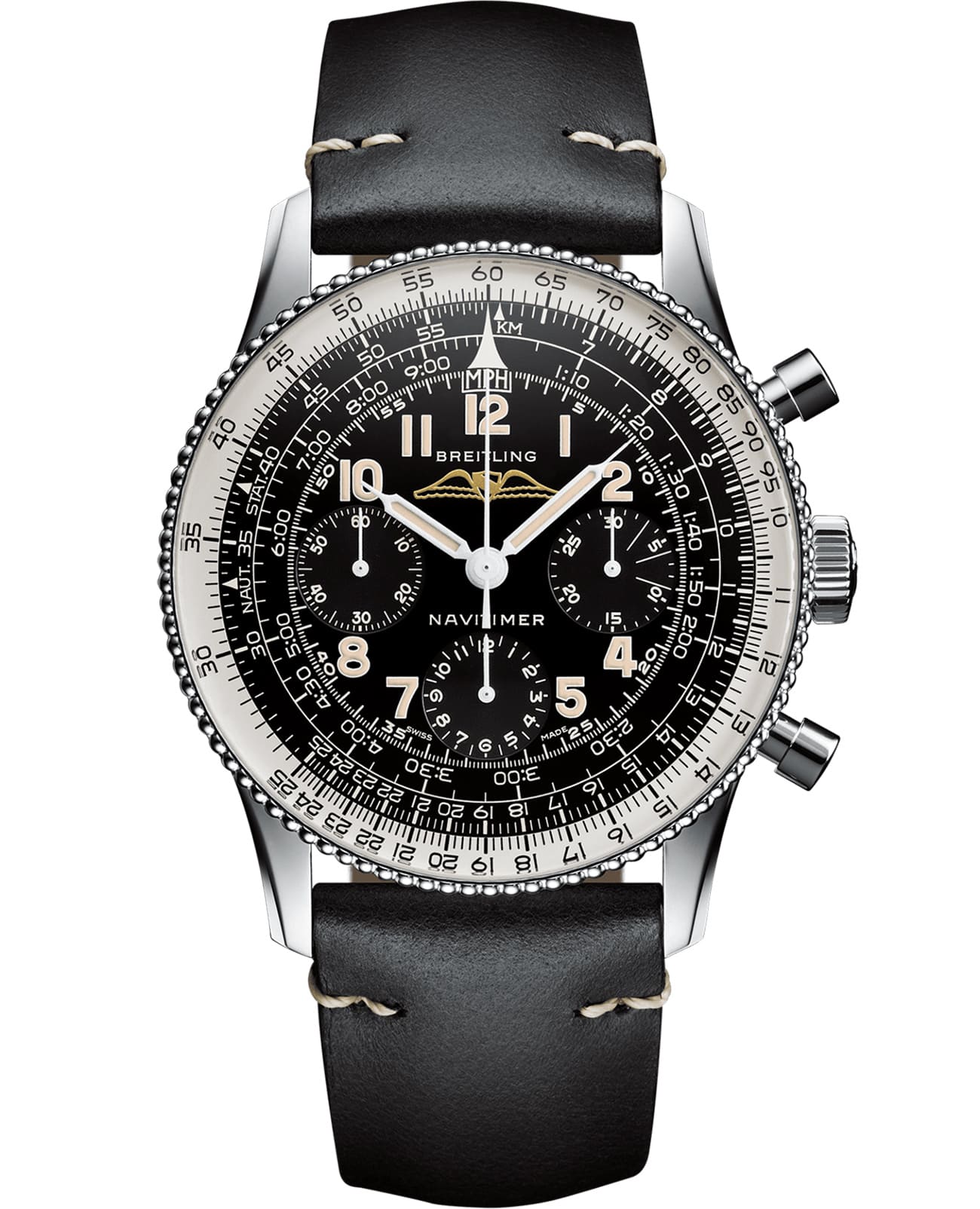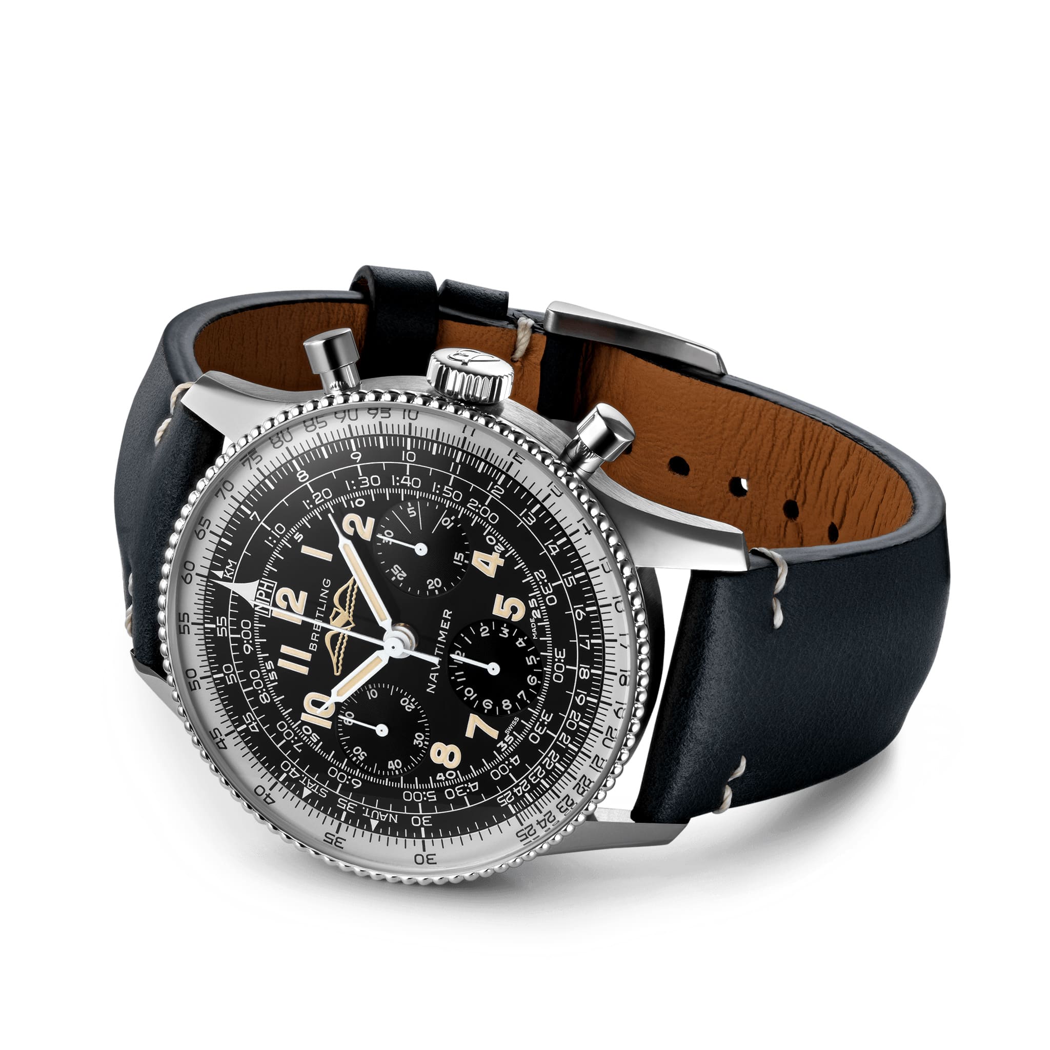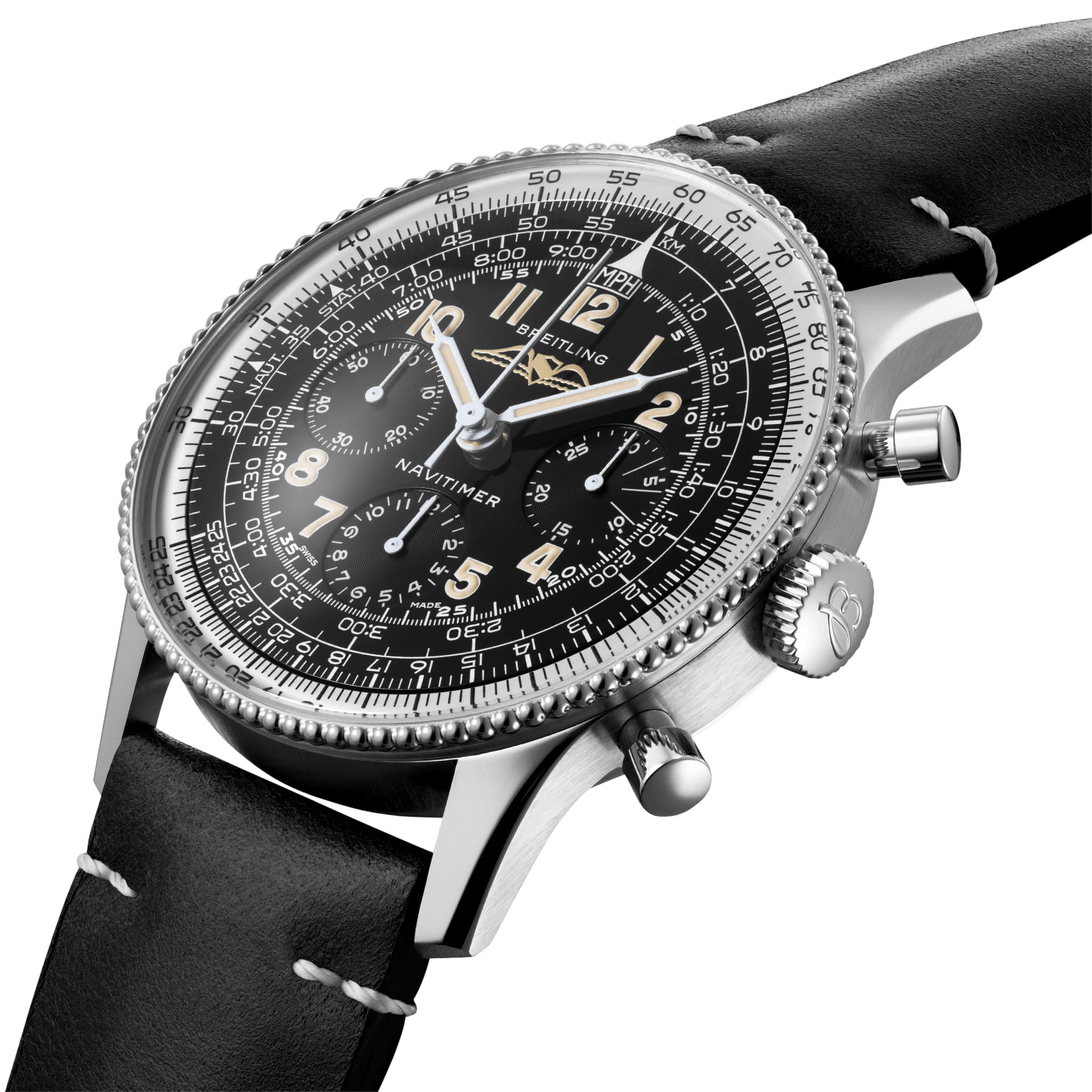 Как и у выпущенных в 1959 году Navitimer Ref. 806, циферблат обновленной модели защищен сферическим органическим стеклом, украшен надписью BREITLING и логотипом в виде крыльев без фирменного вензеля. Единственными отступлениями от оригинала стали показатель водонепроницаемости корпуса, который в современной модели увеличен до 3 бар (30 метров), и наличие покрытия Super-LumiNova®, цвет которого максимально соответствует цвету того люминесцентного материала, который применялся в более ранних моделях коллекции.
