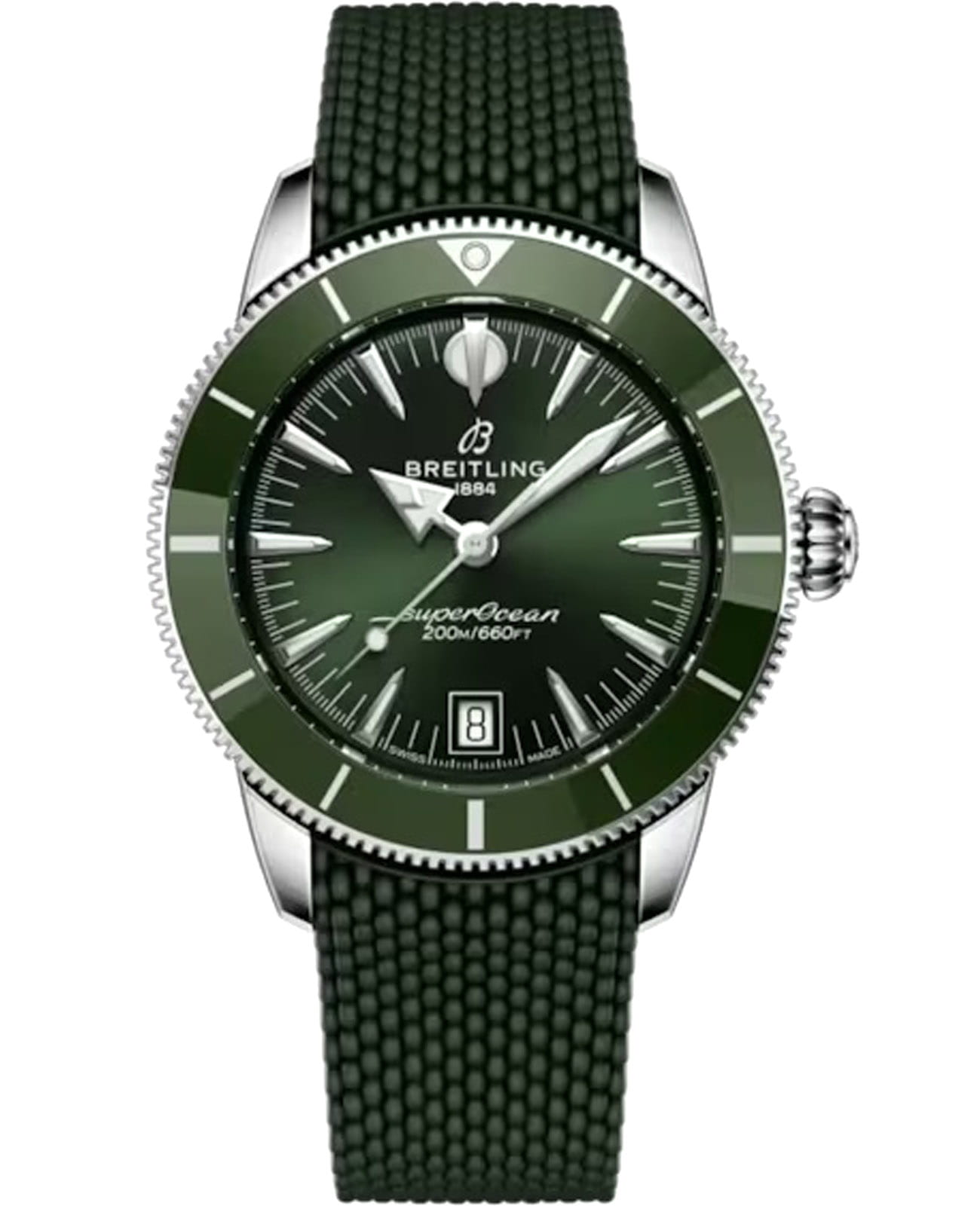 Женские механические часы Breitling Superocean Heritage B31 Automatic 40 AB3110361L1S1 — это стильное сочетание элегантности и современного дизайна. Корпус из нержавеющей стали диаметром 40 мм, идеально сбалансирован и элегантен. Сапфировое стеклоСапфировое стеклоПрочный и надёжный материал из кристалла сапфира синтетического происхождения, характеризующийся особой твёрдостью и устойчивостью к царапинам и повреждениям. с антибликовым покрытием защищает циферблат от царапин и обеспечивает отличную читаемость при любом освещении. Каучуковый ремешок на раскладной застёжкеРаскладная застёжкаТакой тип застёжки используется только на браслетах из металла. Она никогда не раскрывается полностью, происходит разделение на 2 и более частей. Раскладывающая застёжка снизит вероятность потери часов к минимуму. идеально дополняют дизайн часов, обеспечивая комфортное ношение. Стрелки и метки на циферблате имеют люминесцентное покрытиеЛюминесцентное покрытиеПозволяет считывать показания времени в темноте. Производители наносят на стрелки, часовые индексы, безель или поверхность циферблата светонакопительный состав, дающий холодное свечение. Super-LumiNova® позволяющее легко определять время даже в темноте. Вращающийся безельБезельВнешний ободок, закрепляющий стекло. В спортивных часах так называется поворотное кольцо с делениями на циферблате, выполняет роль таймера – замеряет отрезки времени на шкале. Неподвижный безель – элемент декора. Однонаправленно вращающийся безель на дайверских часах позволяет фиксировать моменты погружения и выныривания на поверхность. с керамической вставкой обеспечивает исключительную устойчивость к царапинам. Часы обладают впечатляющей водонепроницаемостью до 20 бар (200 метров), что делает их идеальными для плавания, ныряния и погружений с аквалангом. Окошко даты находится в положении 6 часов. Прочная конструкция часов и высокопроизводительный механизм делают их идеальным спутником для любителей активного отдыха. В коллекции представлен автоматический механизм B31, первый эксклюзивный калибр Breitling с тремя стрелками.
