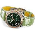 и циферблат инкрустированы бриллиантами. Ремешок из кожи аллигатора с раскладной застёжкойРаскладная застёжкаТакой тип застёжки используется только на браслетах из металла. Она никогда не раскрывается полностью, происходит разделение на 2 и более частей. Раскладывающая застёжка снизит вероятность потери часов к минимуму.. Стрелки и метки с люминесцентным покрытиемЛюминесцентное покрытиеПозволяет считывать показания времени в темноте. Производители наносят на стрелки, часовые индексы, безель или поверхность циферблата светонакопительный состав, дающий холодное свечение.. Класс водозащиты: 100 метров, позволит плавать, нырять и заниматься другими водными видами спорта.