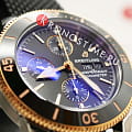 Корпус часов изготовлен из нержавеющей стали и 18-каратного красного золота. Черный каучуковый ремешок с застежкой, открывающейся нажатием кнопки. Класс водозащиты: 200 метров, позволит плавать, нырять и заниматься другими водными видами спорта.