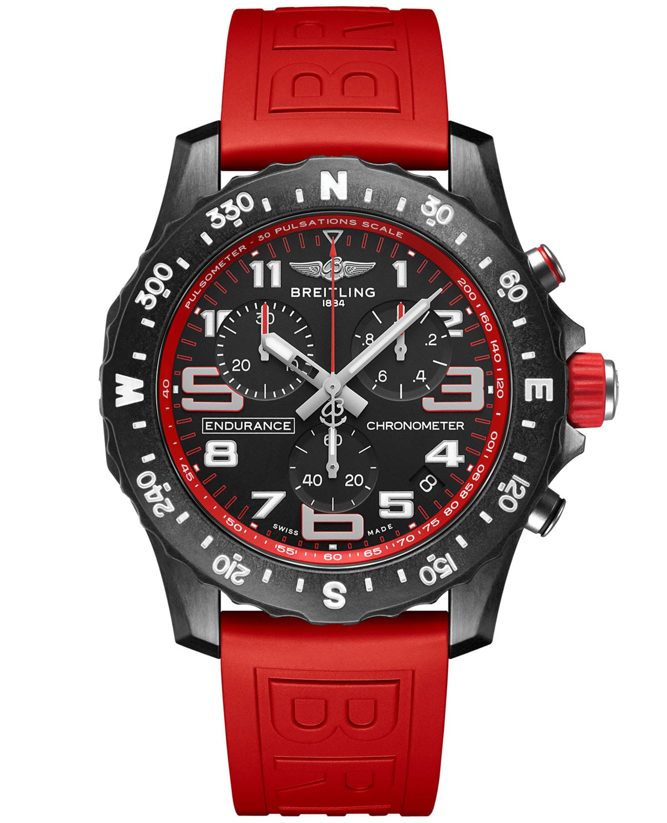 Материал корпуса Breitlight® – прочный сверхлегкий полимер, вес которого в 3,3 раза меньше, чем у титана, и в 5,8 раза меньше, чем у нержавеющей стали. Термически стабильный и гипоаллергенный материал Breitlight® обладает низкой магнитной восприимчивостью, а также высокой стойкостью к царапинам, износу и коррозии. Красный каучуковый браслет с двойной классической застежкой из материала Breitlight®.