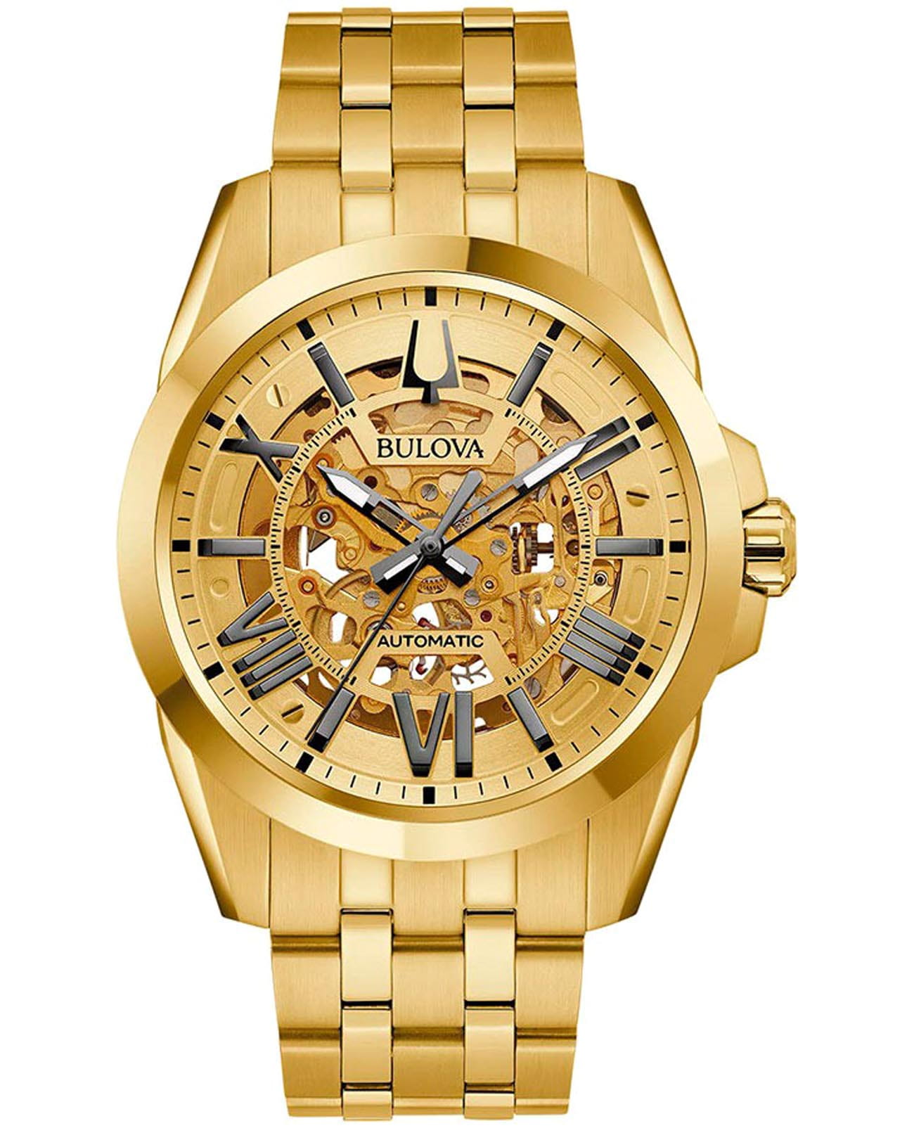 Мужские механические часы-скелетоны с автоподзаводом Bulova Sutton 97A162 – отражающий идеальное сочетание современного дизайна, надёжности и функциональности. Элегантный облик станет превосходным завершением образа, наделив его индивидуальным характером. Корпус из нержавеющей стали с PVD-покрытиемPVDУльтратонкое покрытие наносится в технике вакуумного напыления, сочетает в себе нитрид титана особой прочности со слоем золота или оксида хрома. Несёт в себе декоративную или защитную функцию. золотистого цвета, диаметром 43 мм идеально сбалансирован и элегантен. Минеральное стеклоМинеральное стеклоМинеральное стекло представляет собой искусственно выращенный минерал кварца. Такое стекло отличается особой устойчивостью к повреждениям и царапинам. Уступает по некоторым качествам сапфировому стеклу. защищает циферблат от царапин и устойчивое к мелким механическим повреждениям. Стальной браслет с PVD-покрытиемPVDУльтратонкое покрытие наносится в технике вакуумного напыления, сочетает в себе нитрид титана особой прочности со слоем золота или оксида хрома. Несёт в себе декоративную или защитную функцию. на застёжке-бабочке с кнопкамиЗастёжка "бабочка"Такой вид застёжки дополняется предохранителями, помогающими избежать случайного раскрытия браслета. Обладают изящным исполнением. обеспечивает комфортное ношение. Водозащита 100 метров позволит плавать, нырять и заниматься другими водными видами спорта. Стрелки с люминесцентным покрытиемЛюминесцентное покрытиеПозволяет считывать показания времени в темноте. Производители наносят на стрелки, часовые индексы, безель или поверхность циферблата светонакопительный состав, дающий холодное свечение. позволяющие легко определять время даже в темноте. Эта модель – отличный выбор для тех, кто ищет сочетание стиля, качества и функциональности. Часы станут не только полезным аксессуаром, но и выразительным элементом вашего имиджа.