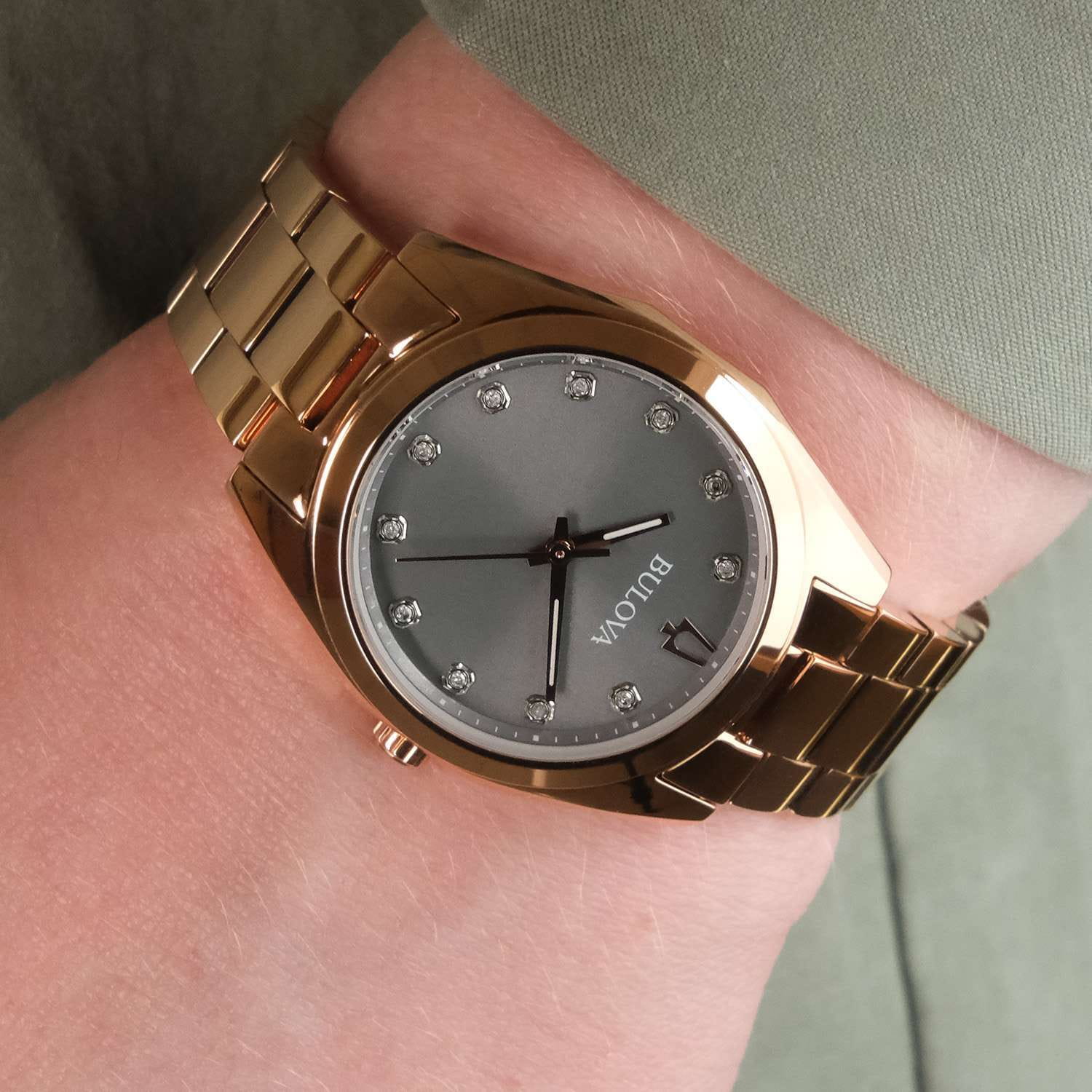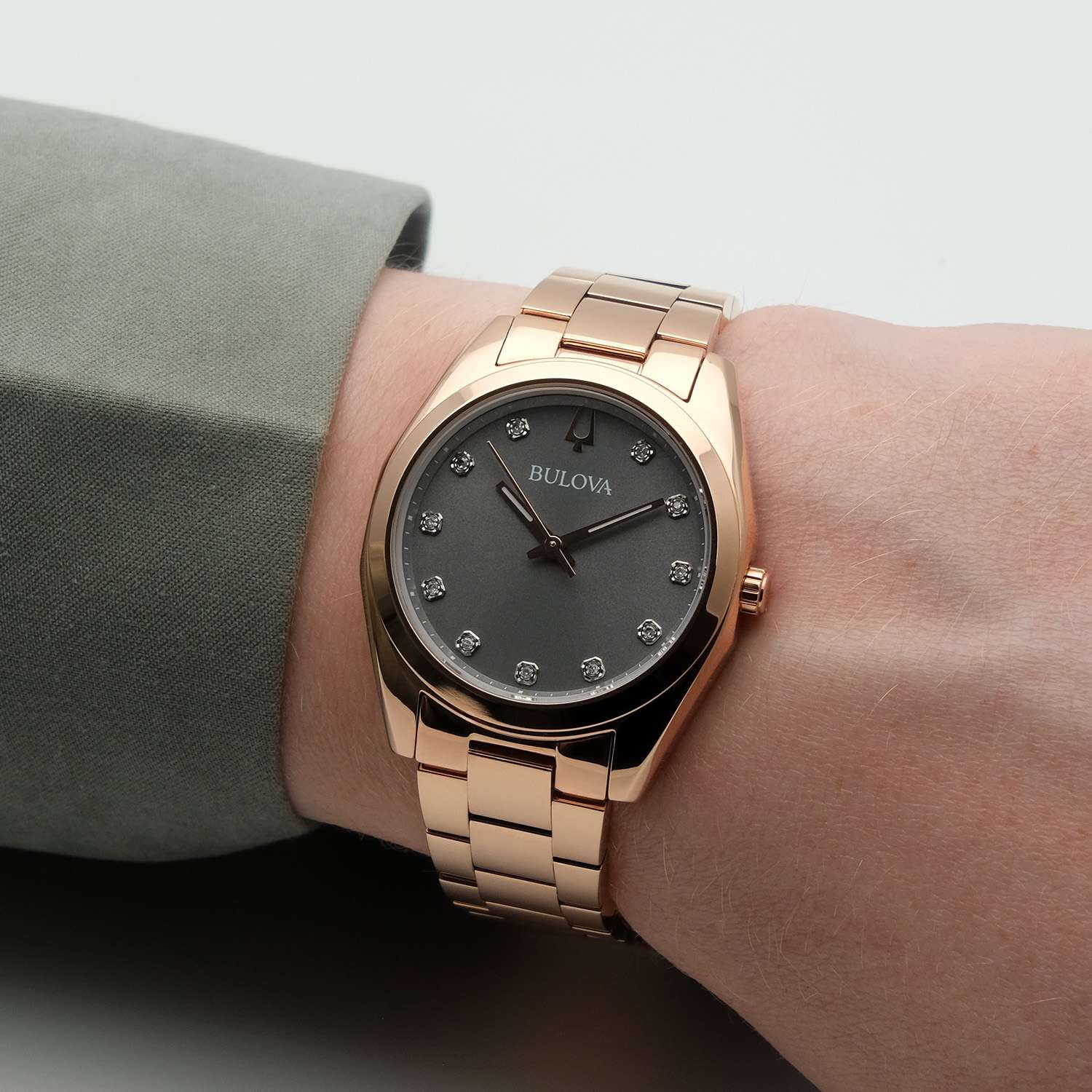 Женские кварцевые часы Bulova Surveyor 97P156 – отражающий идеальное сочетание современного дизайна, надёжности и функциональности. Элегантный облик станет превосходным завершением образа, наделив его индивидуальным характером. Корпус из нержавеющей стали с IP-покрытиемIP-покрытиеМетод ионного напыления. Демонстрирует повышенную устойчивость к истиранию, окислению и химическим веществам. Под воздействием высокого давления и температуры около 1500°C молекулы металла надёжно соединяются с частицами корпуса часов. цвета розового золота, диаметром 31 мм идеально сбалансирован и элегантен. Минеральное стеклоМинеральное стеклоМинеральное стекло представляет собой искусственно выращенный минерал кварца. Такое стекло отличается особой устойчивостью к повреждениям и царапинам. Уступает по некоторым качествам сапфировому стеклу. защищает циферблат от царапин и устойчивое к мелким механическим повреждениям. Циферблат украшен бриллиантами. Стальной браслет с IP-покрытиемIP-покрытиеМетод ионного напыления. Демонстрирует повышенную устойчивость к истиранию, окислению и химическим веществам. Под воздействием высокого давления и температуры около 1500°C молекулы металла надёжно соединяются с частицами корпуса часов. на застёжке-бабочке с кнопкамиЗастёжка "бабочка"Такой вид застёжки дополняется предохранителями, помогающими избежать случайного раскрытия браслета. Обладают изящным исполнением. обеспечивает комфортное ношение. Стрелки с люминесцентным покрытиемЛюминесцентное покрытиеПозволяет считывать показания времени в темноте. Производители наносят на стрелки, часовые индексы, безель или поверхность циферблата светонакопительный состав, дающий холодное свечение.. Водозащита 30 метров позволит защитить корпус от случайных брызг или капель дождя. Эта модель – отличный выбор для тех, кто ищет сочетание стиля, качества и функциональности. Часы станут не только полезным аксессуаром, но и выразительным элементом вашего имиджа.