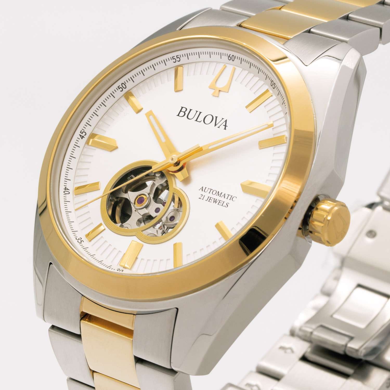 Мужские механические часы-скелетоны с автоподзаводом Bulova Surveyor 98A284 – отражающий идеальное сочетание современного дизайна, надёжности и функциональности. Элегантный облик станет превосходным завершением образа, наделив его индивидуальным характером. Корпус из нержавеющей стали серебристого цвета, диаметром 42 мм идеально сбалансирован и элегантен. Минеральное стеклоМинеральное стеклоМинеральное стекло представляет собой искусственно выращенный минерал кварца. Такое стекло отличается особой устойчивостью к повреждениям и царапинам. Уступает по некоторым качествам сапфировому стеклу. защищает циферблат от царапин и устойчивое к мелким механическим повреждениям. Неподвижный безельБезельВнешний ободок, закрепляющий стекло. В спортивных часах так называется поворотное кольцо с делениями на циферблате, выполняет роль таймера – замеряет отрезки времени на шкале. Неподвижный безель – элемент декора. Однонаправленно вращающийся безель на дайверских часах позволяет фиксировать моменты погружения и выныривания на поверхность. с IP-покрытиемIP-покрытиеМетод ионного напыления. Демонстрирует повышенную устойчивость к истиранию, окислению и химическим веществам. Под воздействием высокого давления и температуры около 1500°C молекулы металла надёжно соединяются с частицами корпуса часов. золотистого цвета. Стальной браслет с частичным IP-покрытиемIP-покрытиеМетод ионного напыления. Демонстрирует повышенную устойчивость к истиранию, окислению и химическим веществам. Под воздействием высокого давления и температуры около 1500°C молекулы металла надёжно соединяются с частицами корпуса часов. на застёжке-бабочке с кнопкамиЗастёжка "бабочка"Такой вид застёжки дополняется предохранителями, помогающими избежать случайного раскрытия браслета. Обладают изящным исполнением. обеспечивает комфортное ношение. Стрелки с люминесцентным покрытиемЛюминесцентное покрытиеПозволяет считывать показания времени в темноте. Производители наносят на стрелки, часовые индексы, безель или поверхность циферблата светонакопительный состав, дающий холодное свечение.. Водозащита 30 метров позволит защитить корпус от случайных брызг или капель дождя. Эта модель – отличный выбор для тех, кто ищет сочетание стиля, качества и функциональности. Часы станут не только полезным аксессуаром, но и выразительным элементом вашего имиджа.