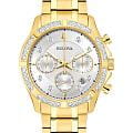 Мужские кварцевые часы-хронографХронографФункция позволяет измерять отрезки времени с особой точностью: часы, минуты, секунды. Верным признаком хронографа является наличие на циферблате 3 дополнительных окошек-счётчиков. Bulova Sutton 98E113 – отражающий идеальное сочетание современного дизайна, надёжности и функциональности. Элегантный облик станет превосходным завершением образа, наделив его индивидуальным характером. Корпус из нержавеющей стали с PVD-покрытиемPVDУльтратонкое покрытие наносится в технике вакуумного напыления, сочетает в себе нитрид титана особой прочности со слоем золота или оксида хрома. Несёт в себе декоративную или защитную функцию. золотистого цвета, диаметром 43 мм идеально сбалансирован и элегантен. Минеральное стеклоМинеральное стеклоМинеральное стекло представляет собой искусственно выращенный минерал кварца. Такое стекло отличается особой устойчивостью к повреждениям и царапинам. Уступает по некоторым качествам сапфировому стеклу. защищает циферблат от царапин и устойчивое к мелким механическим повреждениям. Апертура даты между 4 и 5 часами. Секундомер. Стальной браслет с PVD-покрытиемPVDУльтратонкое покрытие наносится в технике вакуумного напыления, сочетает в себе нитрид титана особой прочности со слоем золота или оксида хрома. Несёт в себе декоративную или защитную функцию. на застёжке-бабочке с кнопкамиЗастёжка "бабочка"Такой вид застёжки дополняется предохранителями, помогающими избежать случайного раскрытия браслета. Обладают изящным исполнением. обеспечивает комфортное ношение. Неподвижный безельБезельВнешний ободок, закрепляющий стекло. В спортивных часах так называется поворотное кольцо с делениями на циферблате, выполняет роль таймера – замеряет отрезки времени на шкале. Неподвижный безель – элемент декора. Однонаправленно вращающийся безель на дайверских часах позволяет фиксировать моменты погружения и выныривания на поверхность. украшен бриллиантами. Водозащита 30 метров позволит защитить корпус от случайных брызг или капель дождя. Стрелки с люминесцентным покрытиемЛюминесцентное покрытиеПозволяет считывать показания времени в темноте. Производители наносят на стрелки, часовые индексы, безель или поверхность циферблата светонакопительный состав, дающий холодное свечение. позволяющие легко определять время даже в темноте. Эта модель – отличный выбор для тех, кто ищет сочетание стиля, качества и функциональности. Часы станут не только полезным аксессуаром, но и выразительным элементом вашего имиджа.