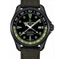 Брендовый трёхстрелочник в спортивном стиле идеально подходит как к дорогому костюму, так и к повседневной рубашке. Тканевый ремешок в защитном цвете хаки впишется в любой образ. Ударопрочный корпусУдаропрочный корпусМеханизм заключён в корпус, выполненный из современных материалов, устойчивых к ударам, механическим повреждениям и падению с высоты: инновационный пластик, карбон, нержавеющая сталь, титан. из стали с PVD-покрытиемPVDУльтратонкое покрытие наносится в технике вакуумного напыления, сочетает в себе нитрид титана особой прочности со слоем золота или оксида хрома. Несёт в себе декоративную или защитную функцию. защищает от повреждений швейцарский автоматический калибр ETA Powermatic 80Powermatic 80Эксклюзивный калибр от швейцарской компании ETA с увеличенным запасом хода до 80 часов за счёт удлинённой заводной пружины. Характеризуется улучшенной системой спуска со сниженным трением. с увеличенным 80-часовым резервом хода. Водостойкость 200 метров. Завинчивающиеся заводная головка с блокировкой и прозрачная задняя крышка. Двухстороннее антибликовое покрытие для стекла из сапфира. Концепция DS ConceptDS ConceptDouble Security Concept, обозначает двойную надёжность и безупречную точность часов Certina. Двойная система защиты подразумевает обеспечение максимальной устойчивости к ударам и высоких показателей водонепроницаемости.. Функция GMTGMTОтображение времени второго часового пояса.Такая функция особенно актуальна для путешественников и бизнесменов,которые общаются с людьми из разных стран,теперь вы всегда будете знать,какой час у вашего партнёра или близкого человека., апертура даты. Диаметр корпуса: 43,1 мм.
