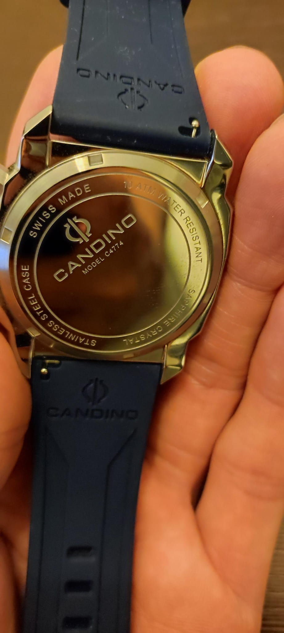 Швейцарские мужские наручные часы-хронографХронографФункция позволяет измерять отрезки времени с особой точностью: часы, минуты, секунды. Верным признаком хронографа является наличие на циферблате 3 дополнительных окошек-счётчиков. Candino Gents Sport C4774/4, кварцевый механизм с высокой точностью. Сапфировое стеклоСапфировое стеклоПрочный и надёжный материал из кристалла сапфира синтетического происхождения, характеризующийся особой твёрдостью и устойчивостью к царапинам и повреждениям. устойчивое к появлению царапин, обладающее высокой прозрачностью. Часы, минуты, секунды. Окошко даты находится в положении 6 часов. Класс водозащиты: 100 метров, позволит плавать, нырять и заниматься другими водными видами спорта. Корпус часов изготовлен из нержавеющей стали. Стрелки и метки с люминесцентным покрытиемЛюминесцентное покрытиеПозволяет считывать показания времени в темноте. Производители наносят на стрелки, часовые индексы, безель или поверхность циферблата светонакопительный состав, дающий холодное свечение.. Каучуковый ремешок на стандартной застёжке.