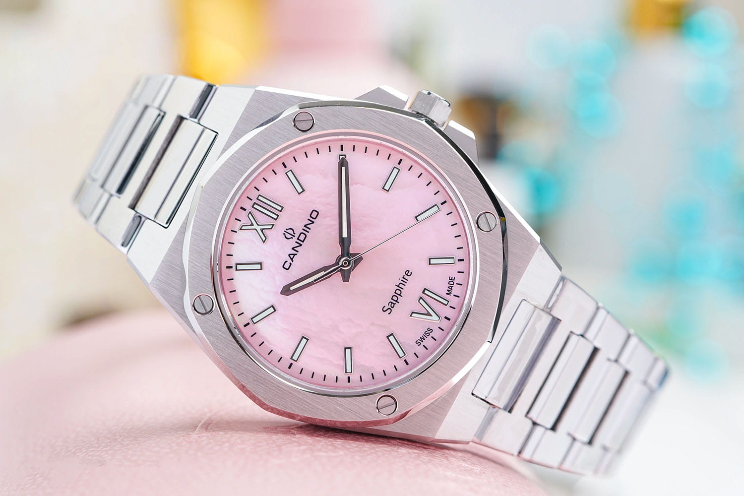Женские кварцевые часы Candino из коллекции Lady Elegance — это стильный аксессуар, сочетающий швейцарское качество и элегантный дизайн. Корпус диаметром 33,5 мм и толщиной 8 мм выполнен из нержавеющей стали 316L. Циферблат розового цвета оформлен индексами и стрелками. Циферблат защищён сапфировым стекломСапфировое стеклоПрочный и надёжный материал из кристалла сапфира синтетического происхождения, характеризующийся особой твёрдостью и устойчивостью к царапинам и повреждениям., устойчивым к царапинам. Механизм — кварцевый, произведённый в Швейцарии. Часы оснащены стальным браслетом с раскладной застёжкойРаскладная застёжкаТакой тип застёжки используется только на браслетах из металла. Она никогда не раскрывается полностью, происходит разделение на 2 и более частей. Раскладывающая застёжка снизит вероятность потери часов к минимуму.. Водонепроницаемость 50 м позволяет использовать часы в повседневных условиях. Гарантия — 2 года. Идеальный выбор для тех, кто ценит точность, красоту и надёжность.
