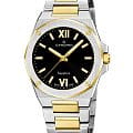Корпус часов выполнен из стали, что придаёт им прочность и долговечность. Класс водозащиты 50 метров позволяет носить часы в условиях умеренного контакта с водой, защищая их от случайных брызг или капель дождя. Браслет с раскладной застёжкой и частичным PVD-покрытиемPVDУльтратонкое покрытие наносится в технике вакуумного напыления, сочетает в себе нитрид титана особой прочности со слоем золота или оксида хрома. Несёт в себе декоративную или защитную функцию. обеспечивает комфортное и надёжное крепление на запястье. Стрелки и метки с люминесцентным покрытиемЛюминесцентное покрытиеПозволяет считывать показания времени в темноте. Производители наносят на стрелки, часовые индексы, безель или поверхность циферблата светонакопительный состав, дающий холодное свечение. облегчают чтение времени даже в условиях слабого освещения. БезельБезельВнешний ободок, закрепляющий стекло. В спортивных часах так называется поворотное кольцо с делениями на циферблате, выполняет роль таймера – замеряет отрезки времени на шкале. Неподвижный безель – элемент декора. Однонаправленно вращающийся безель на дайверских часах позволяет фиксировать моменты погружения и выныривания на поверхность. с PVD-покрытиемPVDУльтратонкое покрытие наносится в технике вакуумного напыления, сочетает в себе нитрид титана особой прочности со слоем золота или оксида хрома. Несёт в себе декоративную или защитную функцию. добавляет часам дополнительную стойкость и эстетический акцент.