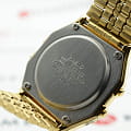 Наручные часы имеют ударопрочный корпусУдаропрочный корпусМеханизм заключён в корпус, выполненный из современных материалов, устойчивых к ударам, механическим повреждениям и падению с высоты: инновационный пластик, карбон, нержавеющая сталь, титан. 8-угольной формы, устойчивый к царапинам, падению, механическим повреждениям. Дополнительную защиту обеспечивает IP-покрытиеIP-покрытиеМетод ионного напыления. Демонстрирует повышенную устойчивость к истиранию, окислению и химическим веществам. Под воздействием высокого давления и температуры около 1500°C молекулы металла надёжно соединяются с частицами корпуса часов. цвета жёлтого золота. Пластиковое стекло отличается прочностью. Кварцевый механизм работает от аккумулятора, срок службы которого составляет 7 лет. Светодиодная микроподсветкаСветодиодная подсветкаСветодиодная или LED-подсветка обеспечивает появление яркого холодного свечения за счёт LED-элементов - маленьких лампочек. Они потребляют минимальное количество энергии, чаще всего можно встретить 1 светодиод, в нижней части циферблата.. Будильник с ежечасным сигналом, секундомер, автоматический календарь. Браслет из нержавеющей стали 316L. Габариты: 33,2 x 36,8 x 8,2 мм.