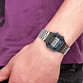 Наручные часы из прошлого вернулись в современной интерпретации. Надёжный корпус выполнен из полимерного пластика, стойко противостоящего ударам и повреждениям, для браслета с регулируемым креплением была выбрана нержавеющая сталь 316L. Электронная модель в серебристом цвете оснащена полезным функционалом: будильник, автоматический календарь, секундомер. Водостойкость 30 метров. Яркая подсветка экрана. Габариты: 36,3 x 38,6 x 9,6 мм.