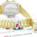 Корпус в золотистом цвете из прочного полимерного пластика имеет легендарную 8-угольную форму, компактный аксессуар одинаково хорошо смотрится как с офисной рубашкой, так и с повседневной футболкой. Электронный дисплей имеет подсветку, его надёжную защиту от повреждений обеспечивает минеральное стекло. Браслет из нержавеющей стали 316L на долгие годы сохранит первоначальный вид. Будильник, автоматический календарь. Габариты: 38,6 x 36,3 x 9,6 мм.