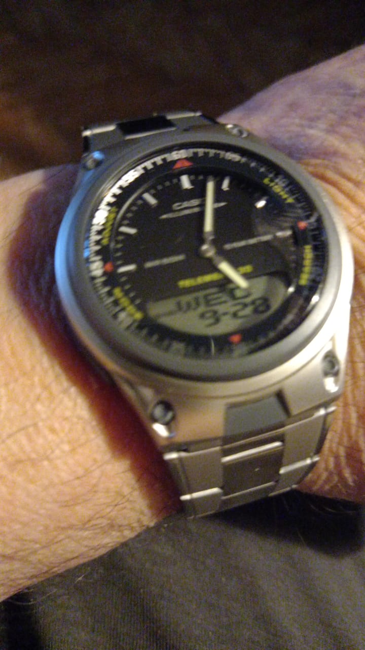Батарейка на 10 лет, водозащита 50 метров, корпус часов пластиковый, но зато браслет металлический.