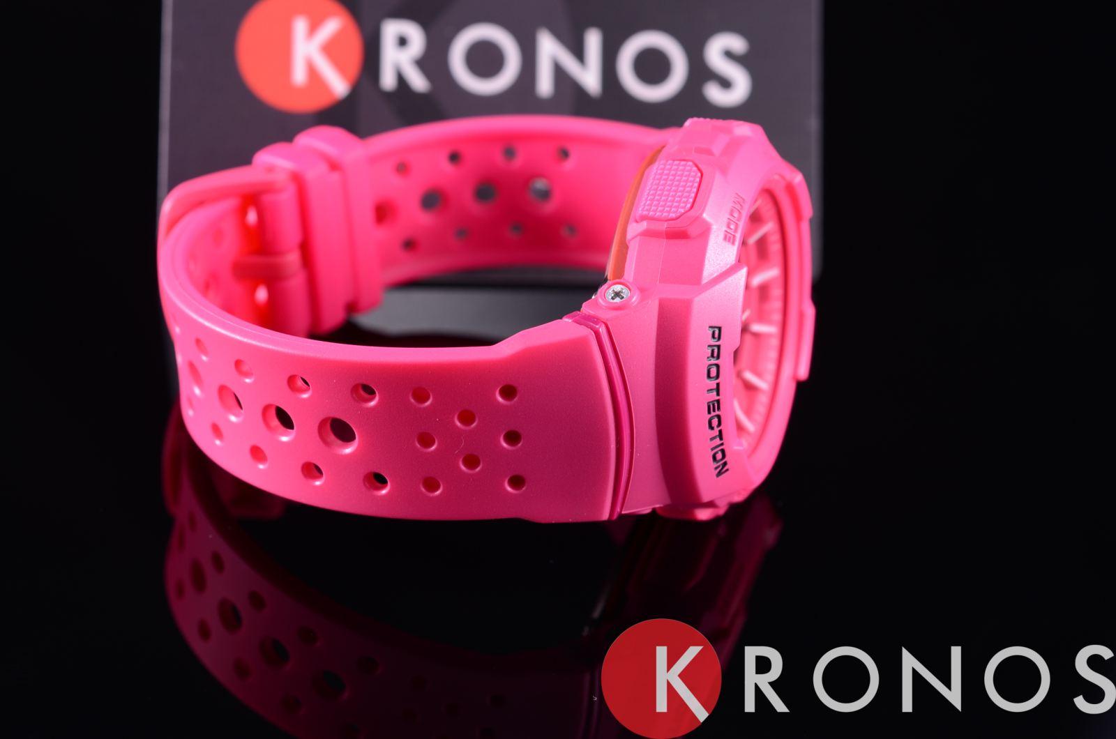 Модель в ярко-розовом исполнении является полезным аксессуаром для любительниц бега, благодаря которому можно в разы повысить эффективность тренировок. Функция Lap Memory 60™ позволяет фиксировать и хранить информацию о дате пробежек, данные времени круга. Память рассчитана на 60 этапов. Японский кварцевый механизм. Батарейка с 3-летним сроком службы. Минеральное стекло. Полимерный ударопрочный корпусУдаропрочный корпусМеханизм заключён в корпус, выполненный из современных материалов, устойчивых к ударам, механическим повреждениям и падению с высоты: инновационный пластик, карбон, нержавеющая сталь, титан.. Циферблат со светодиодной подсветкойСветодиодная подсветкаСветодиодная или LED-подсветка обеспечивает появление яркого холодного свечения за счёт LED-элементов - маленьких лампочек. Они потребляют минимальное количество энергии, чаще всего можно встретить 1 светодиод, в нижней части циферблата.. Будильник с функцией «подремать». ХронографХронографФункция позволяет измерять отрезки времени с особой точностью: часы, минуты, секунды. Верным признаком хронографа является наличие на циферблате 3 дополнительных окошек-счётчиков., секундомер, таймер, календарь. Габариты: 46,4 x 42,6 x 15,3 мм.