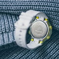 Наручные часы с зелёными деталями оснащены шагомером, счётчик измеряет количество шагов от 0 до 999999. Предусмотрена возможность установить цель на день. Размечена специальная шкала вокруг безеляБезельВнешний ободок, закрепляющий стекло. В спортивных часах так называется поворотное кольцо с делениями на циферблате, выполняет роль таймера – замеряет отрезки времени на шкале. Неподвижный безель – элемент декора. Однонаправленно вращающийся безель на дайверских часах позволяет фиксировать моменты погружения и выныривания на поверхность., достижение отметки «Goal» означает, что план выполнен. Ударопрочный корпусУдаропрочный корпусМеханизм заключён в корпус, выполненный из современных материалов, устойчивых к ударам, механическим повреждениям и падению с высоты: инновационный пластик, карбон, нержавеющая сталь, титан. сделан из прочного полимера, устойчив к падению, вибрации. Работу японского кварцевого механизма обеспечивает батарейка, рассчитанная на 2 года. Минеральное закаленное стекло. Светодиодная подсветкаСветодиодная подсветкаСветодиодная или LED-подсветка обеспечивает появление яркого холодного свечения за счёт LED-элементов - маленьких лампочек. Они потребляют минимальное количество энергии, чаще всего можно встретить 1 светодиод, в нижней части циферблата.. Водостойкость 10 бар. Включение и выключение звука кнопок. Автокалендарь, будильник, секундомер, таймер обратного отсчёта. Указание второго часового пояса. Габариты: 42,6 x 45,2 x 13,3 мм.