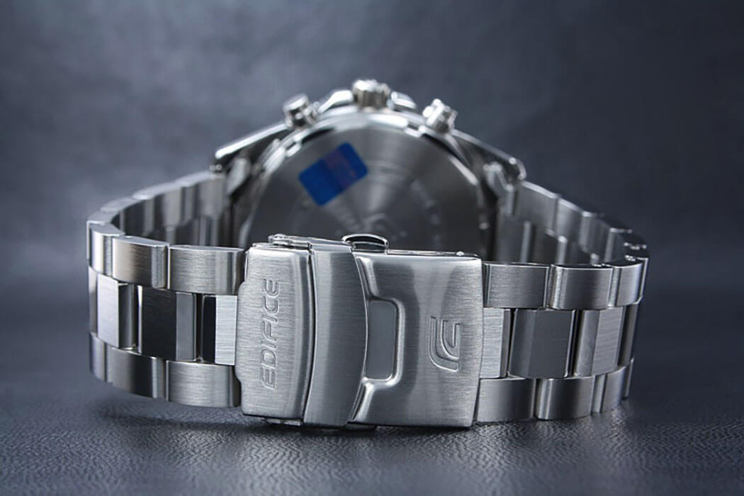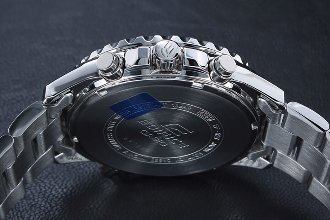 Мужские классические наручные часы Casio Edifice надежные и практичные. Кварцевый японский механизм Miyota. Точность хода не хуже -10 +15 сек./в месяц. Часы оснащены функцией хронографа и тахиметра. Циферблат черного цвета с контрастными индексами. Стрелки и индексы с светонакопительным нанесением. Корпус и браслет выполнены из высококачественной стали с антикоррозийными свойствами. Минеральное стекло устойчиво к появлению царапин. Водонепроницаемость 100М. В часах можно плавать. Степень водонепроницаемости не является величиной, эквивалентной функциональной рабочей глубине.