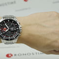Крупный чёрный циферблат имеет красные и голубые элементы, каждая деталь навеивает мысли о приборной панели автомобиля. Броский аксессуар станет стильным завершением индивидуального образа, наделив его спортивными чертами. Яркий хронографХронографФункция позволяет измерять отрезки времени с особой точностью: часы, минуты, секунды. Верным признаком хронографа является наличие на циферблате 3 дополнительных окошек-счётчиков. оснащён кварцевым механизмом с высокой точностью хода. Заводная головка с защитой и завинчивающаяся задняя крышка дополнительно способствуют сохранению водонепроницаемости до 10 бар. Минеральное стекло. Секундомер, окошко даты. Люминесцентная подсветкаЛюминесцентное покрытиеПозволяет считывать показания времени в темноте. Производители наносят на стрелки, часовые индексы, безель или поверхность циферблата светонакопительный состав, дающий холодное свечение.. Корпус из нержавеющей стали с частичным IP-покрытиемIP-покрытиеМетод ионного напыления. Демонстрирует повышенную устойчивость к истиранию, окислению и химическим веществам. Под воздействием высокого давления и температуры около 1500°C молекулы металла надёжно соединяются с частицами корпуса часов.. Габариты: 53,5 x 48,7 x 12,6 мм.