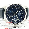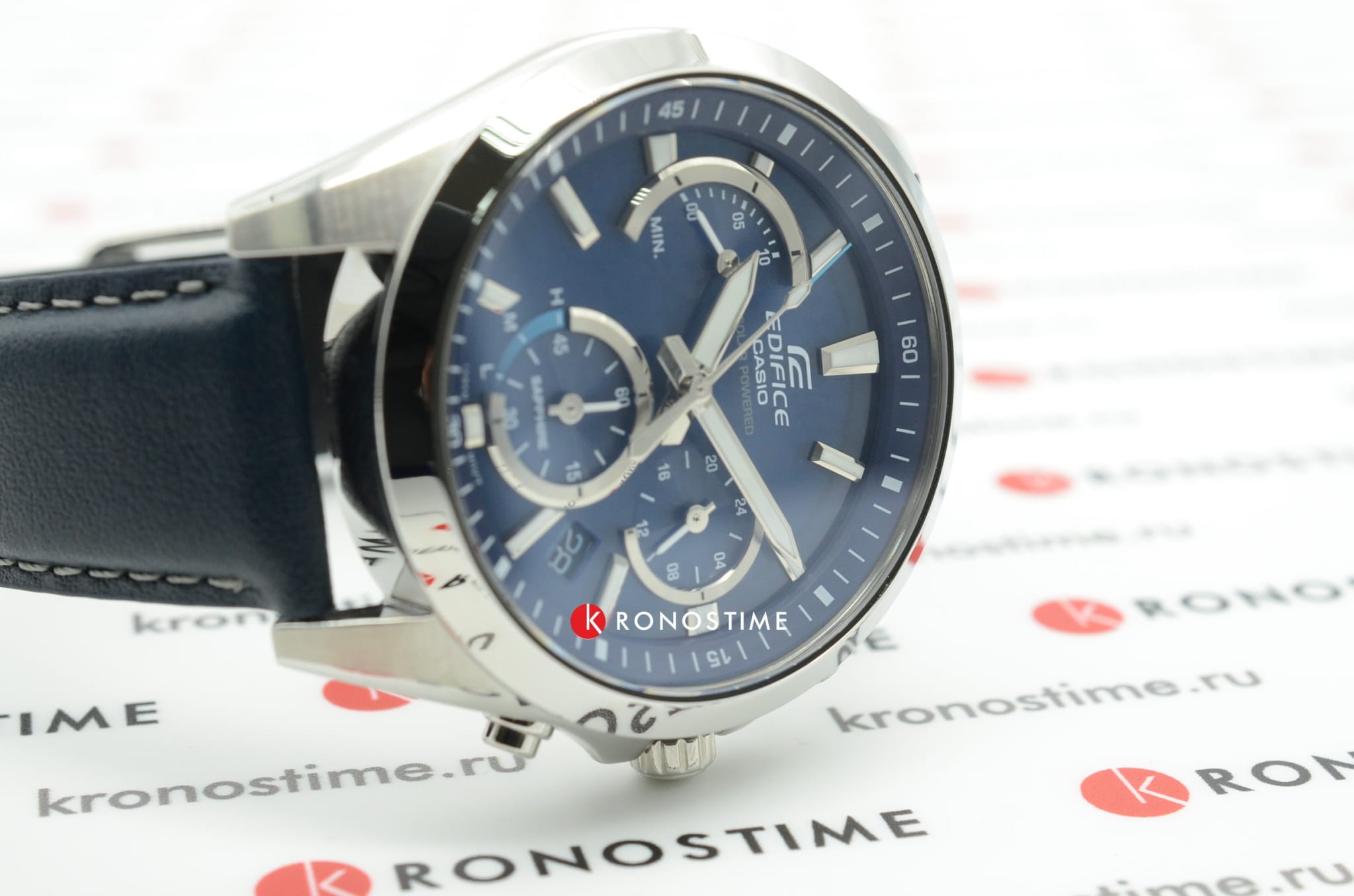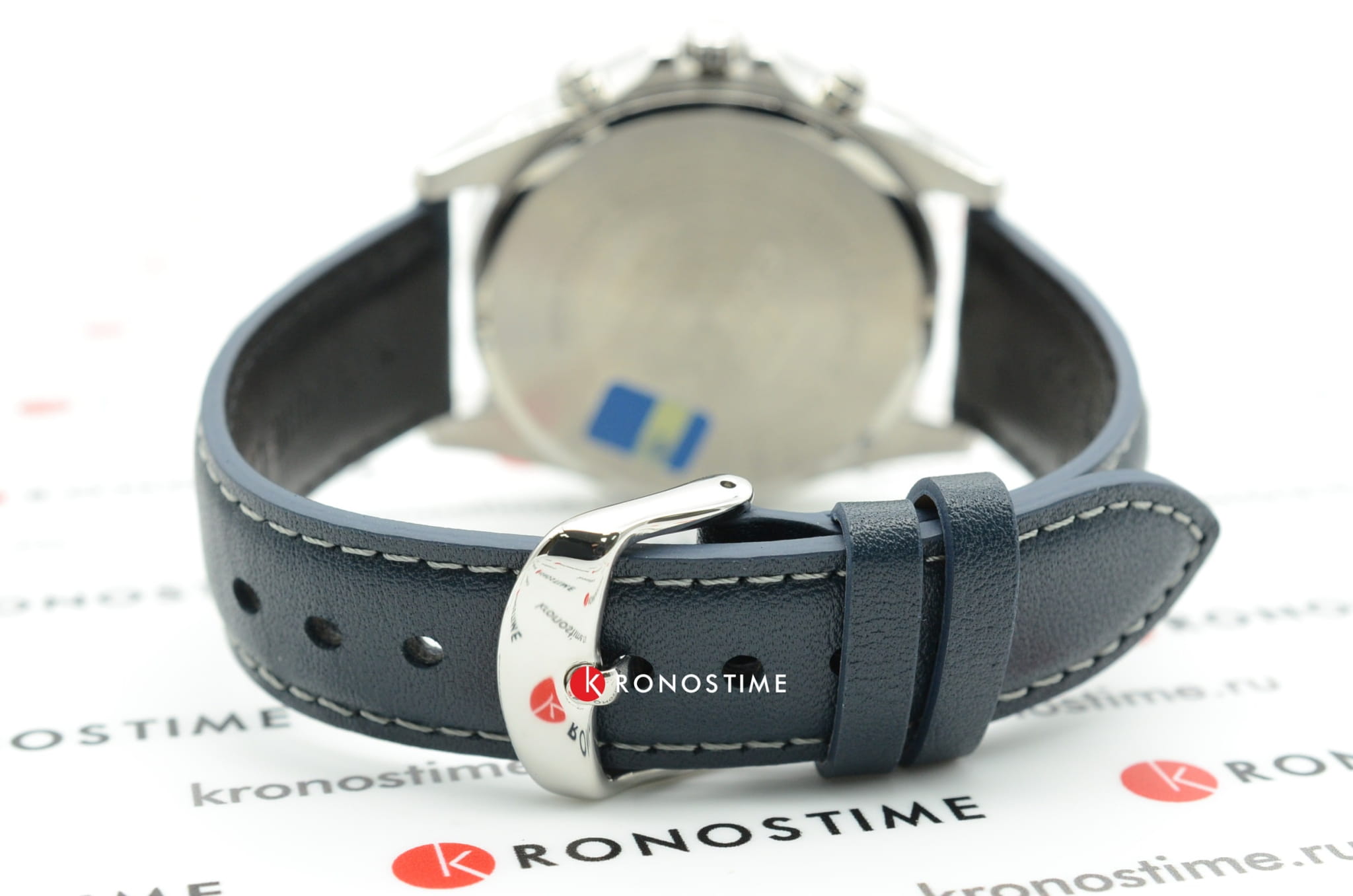 Для модели было выбрано синее цветовое решение, циферблат с необычным расположением счётчиков хронографаХронографФункция позволяет измерять отрезки времени с особой точностью: часы, минуты, секунды. Верным признаком хронографа является наличие на циферблате 3 дополнительных окошек-счётчиков. и крупной индикацией времени выглядит действительно стильно. Наручные часы обеспечиваются питанием благодаря технологии , что весьма удобно и экологично. Точностью хода кварцевого механизма составляет +/- 15 секунд в месяц. Стекло из сапфира. Люминесцентная подсветкаЛюминесцентное покрытиеПозволяет считывать показания времени в темноте. Производители наносят на стрелки, часовые индексы, безель или поверхность циферблата светонакопительный состав, дающий холодное свечение.. Водозащита 10 бар. Ремешок из натуральной кожи. Секундомер, календарь. Габариты: 49,5 x 44,2 x 11,6 мм.