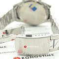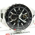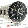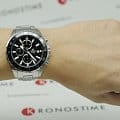 Аксессуар в спортивном стиле прекрасно сочетается с любой одеждой, гармонично смотрится чёрно-серебристая расцветка. Ярким элементом стали жёлтые секундные стрелки. Часы имеют оттенок дайверского дизайна из-за вращающегося чёрного безеляБезельВнешний ободок, закрепляющий стекло. В спортивных часах так называется поворотное кольцо с делениями на циферблате, выполняет роль таймера – замеряет отрезки времени на шкале. Неподвижный безель – элемент декора. Однонаправленно вращающийся безель на дайверских часах позволяет фиксировать моменты погружения и выныривания на поверхность. с защитным IP-покрытиемIP-покрытиеМетод ионного напыления. Демонстрирует повышенную устойчивость к истиранию, окислению и химическим веществам. Под воздействием высокого давления и температуры около 1500°C молекулы металла надёжно соединяются с частицами корпуса часов.. Японский высокоточный кварцевый механизм. Батарейка рассчитана на 2 года работы. Люминесцентная подсветкаЛюминесцентное покрытиеПозволяет считывать показания времени в темноте. Производители наносят на стрелки, часовые индексы, безель или поверхность циферблата светонакопительный состав, дающий холодное свечение.. Надёжное минеральное стекло. Ударопрочный корпусУдаропрочный корпусМеханизм заключён в корпус, выполненный из современных материалов, устойчивых к ударам, механическим повреждениям и падению с высоты: инновационный пластик, карбон, нержавеющая сталь, титан. и браслет из нержавеющей стали 316L. Завинчивающаяся задняя крышка. Водостойкость 10 бар. Секундомер, хронографХронографФункция позволяет измерять отрезки времени с особой точностью: часы, минуты, секунды. Верным признаком хронографа является наличие на циферблате 3 дополнительных окошек-счётчиков., индикация числа. Габариты: 51 x 45,9 x 12 мм.