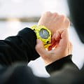 Стильный аксессуар в чёрно-жёлтом исполнении будет ярким дополнением к образу. Часы отличаются пластиковым противоударным корпусомУдаропрочный корпусМеханизм заключён в корпус, выполненный из современных материалов, устойчивых к ударам, механическим повреждениям и падению с высоты: инновационный пластик, карбон, нержавеющая сталь, титан., устойчивым к повреждениям, вибрации, падению с высоты. Они сохраняют водонепроницаемость при давлении 20 бар. Среди часовых усложнений: таймер, секундомер, BluetoothBluetoothСовременная технология, позволяющая синхронизировать часы с телефоном и переносить данные. Часы с Bluetooth расширяют возможности вашего смартфона и делают его использование ещё более удобным., автоматический календарь, мировое времяМировое время Полезное часовое усложнение, отображающее время в основных городах и известных областях по всему миру, оно связано с часовыми поясами, удобно для путешественников и бизнесменов. , функция мирового времениМировое время Полезное часовое усложнение, отображающее время в основных городах и известных областях по всему миру, оно связано с часовыми поясами, удобно для путешественников и бизнесменов. . Двойная подсветка, светодиоднаяСветодиодная подсветкаСветодиодная или LED-подсветка обеспечивает появление яркого холодного свечения за счёт LED-элементов - маленьких лампочек. Они потребляют минимальное количество энергии, чаще всего можно встретить 1 светодиод, в нижней части циферблата. и люминесцентнаяЛюминесцентное покрытиеПозволяет считывать показания времени в темноте. Производители наносят на стрелки, часовые индексы, безель или поверхность циферблата светонакопительный состав, дающий холодное свечение.. Минеральное стекло устойчиво к царапинам. Габариты: 54,1 x 48,6 x 15,5 мм.